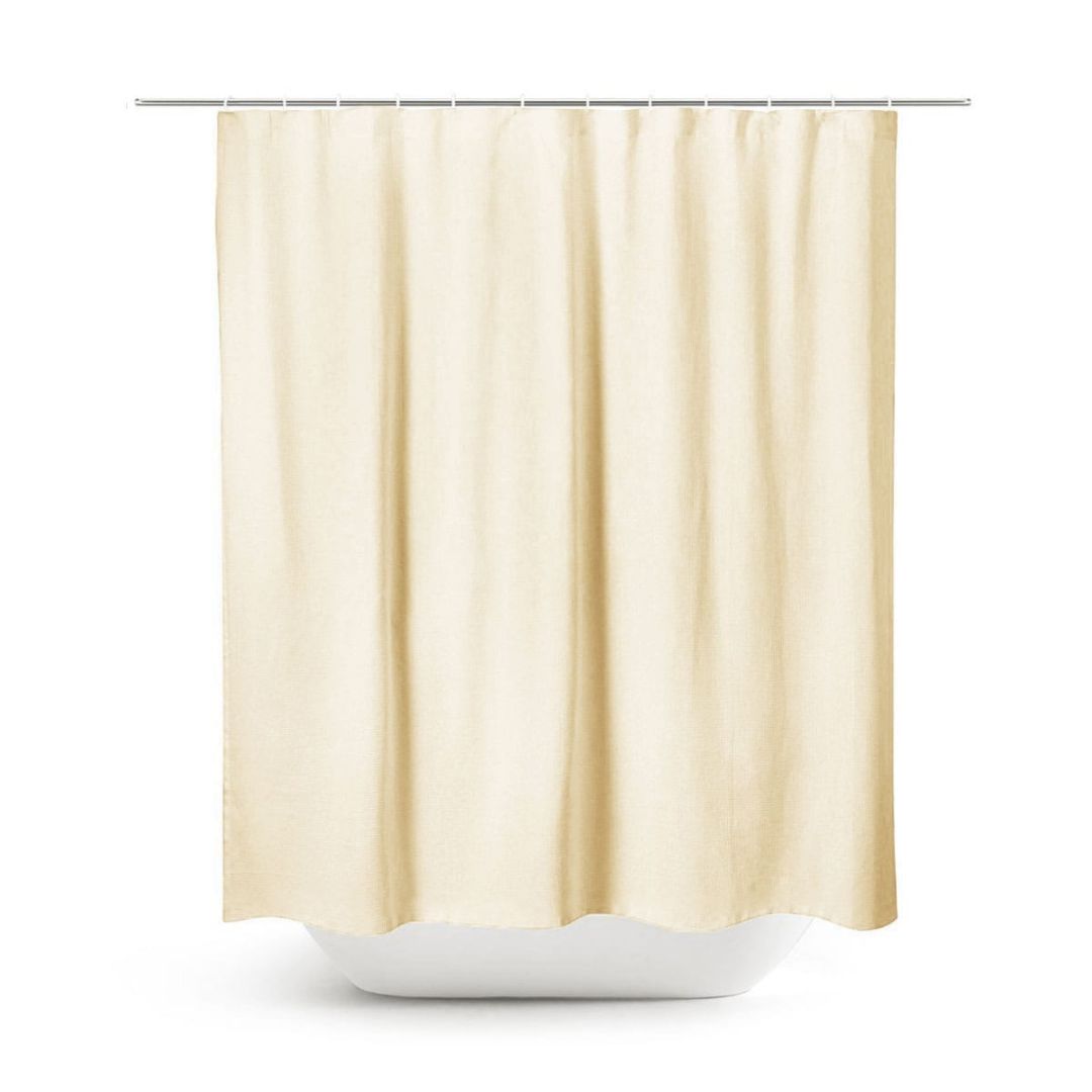 Μονόχρωμη αδιάβροχη κουρτίνα μπάνιου με κρίκους, από ανθεκτικό ύφασμα.
