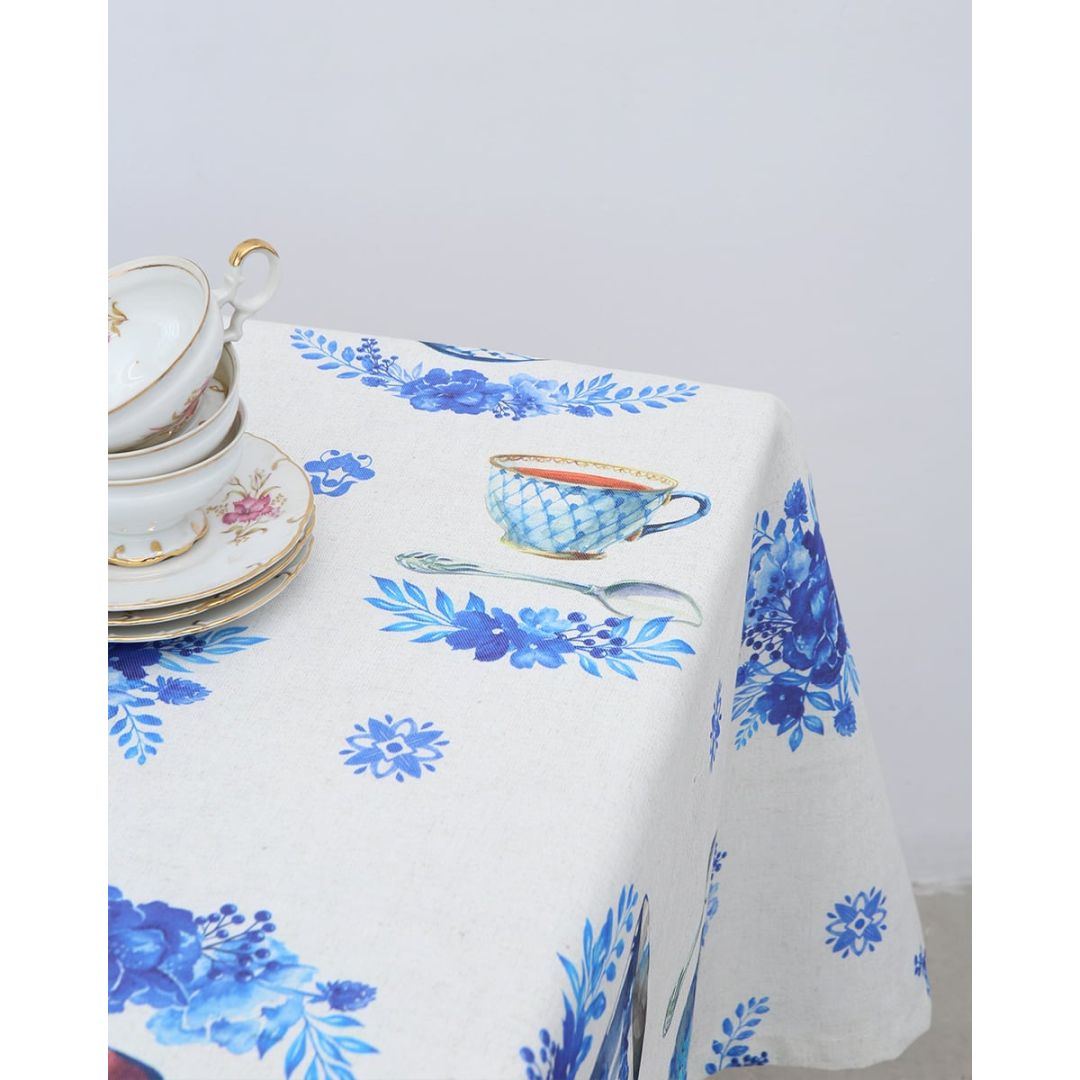 Τραπεζομάντηλο με ψηφιακή εκτύπωση σε σχέδιο υψηλής ευκρίνειας σερβίτσιο τσαγιού και μπλε λουλούδια, από 100% polyester.