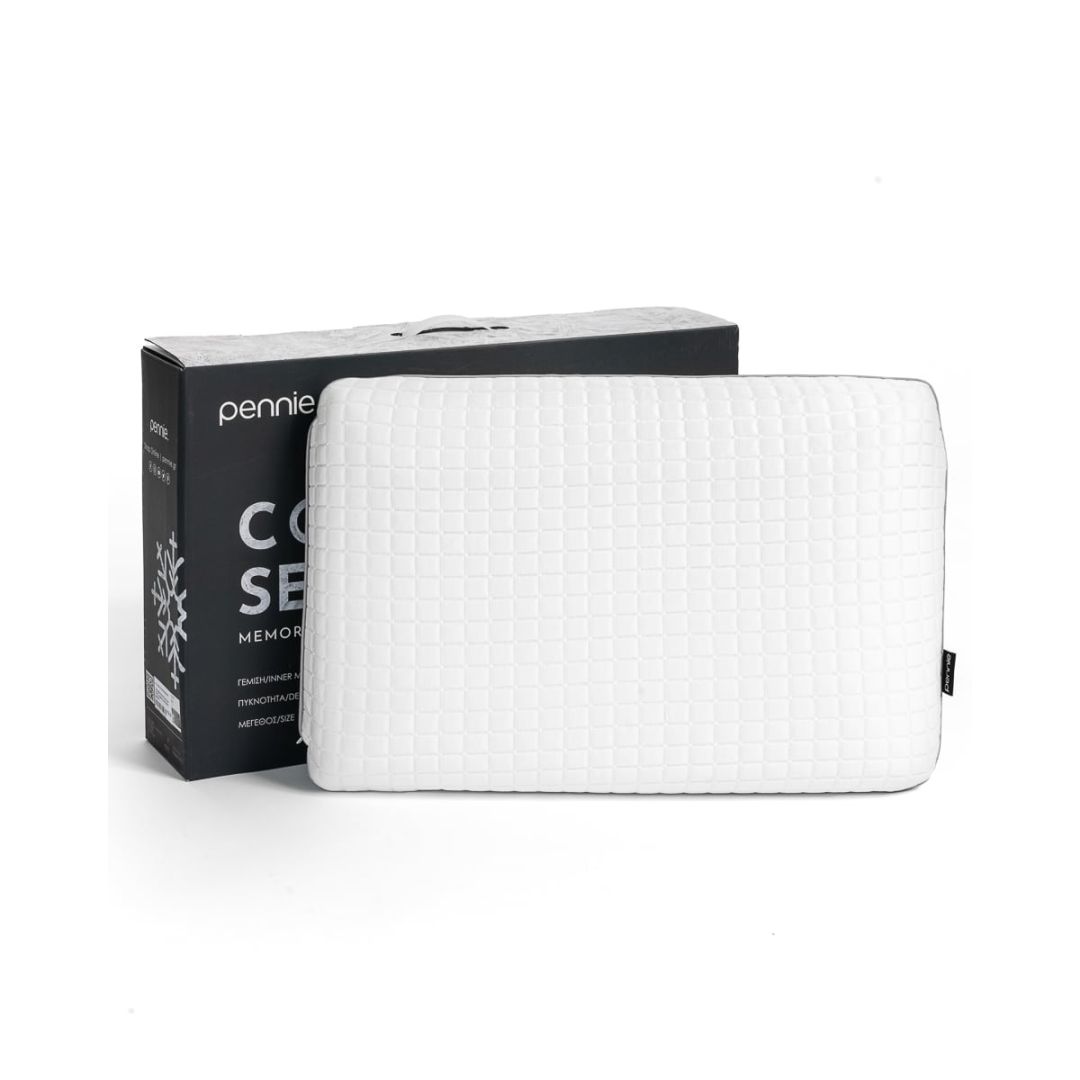 Ανατομικό μαξιλάρι με γέμιση και πάνελ cool gel, από 100% polyester. Διαθέτει αποσπώμενο κάλυμμα. Σε χάρτινη signature συσκευασία Pennie.
