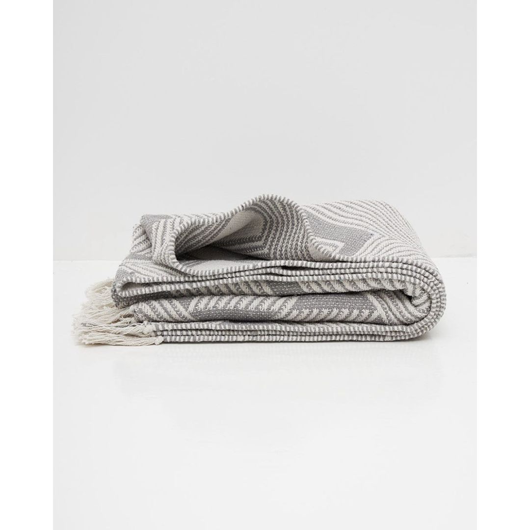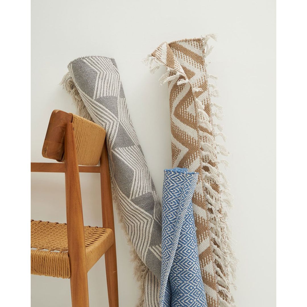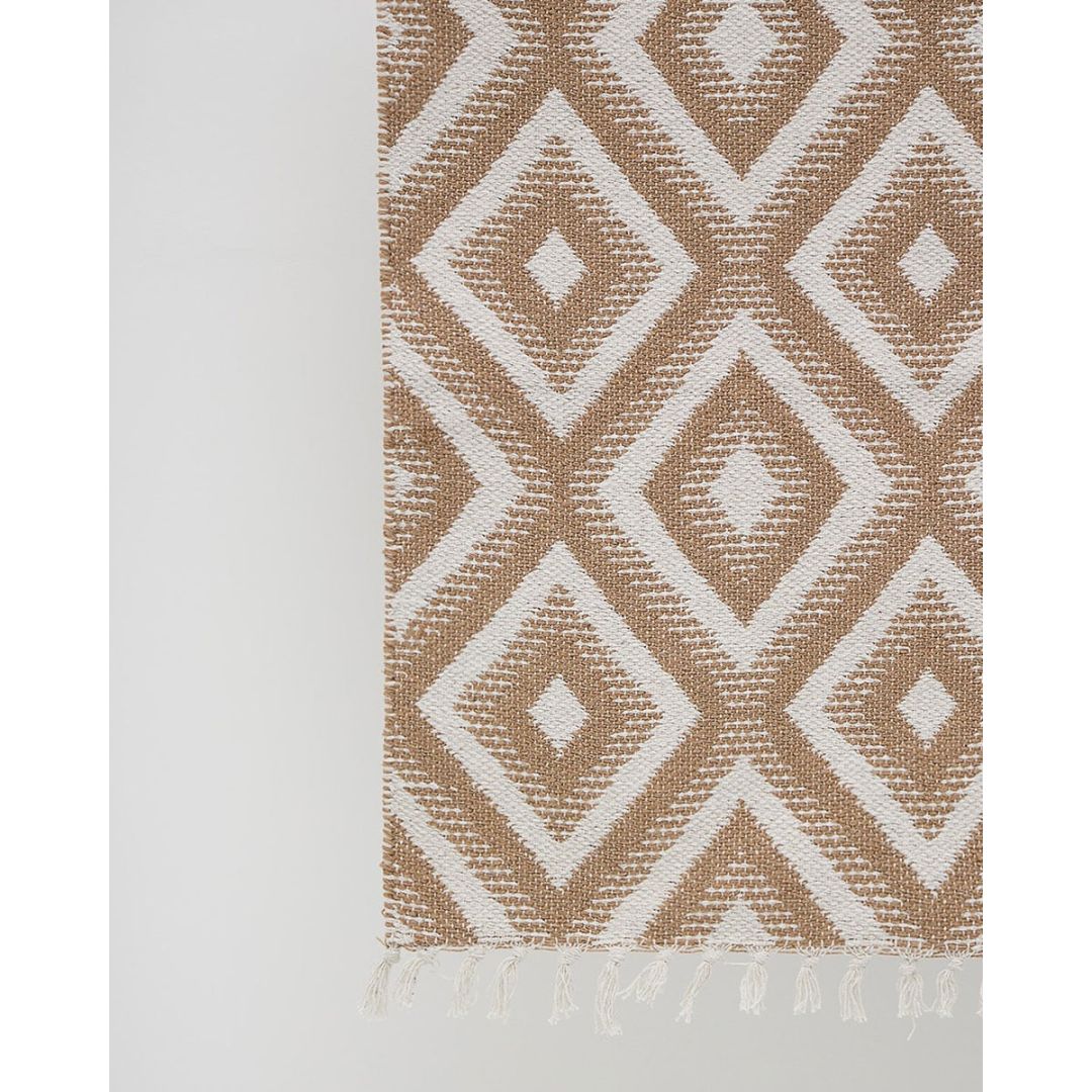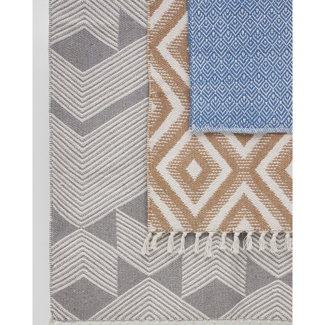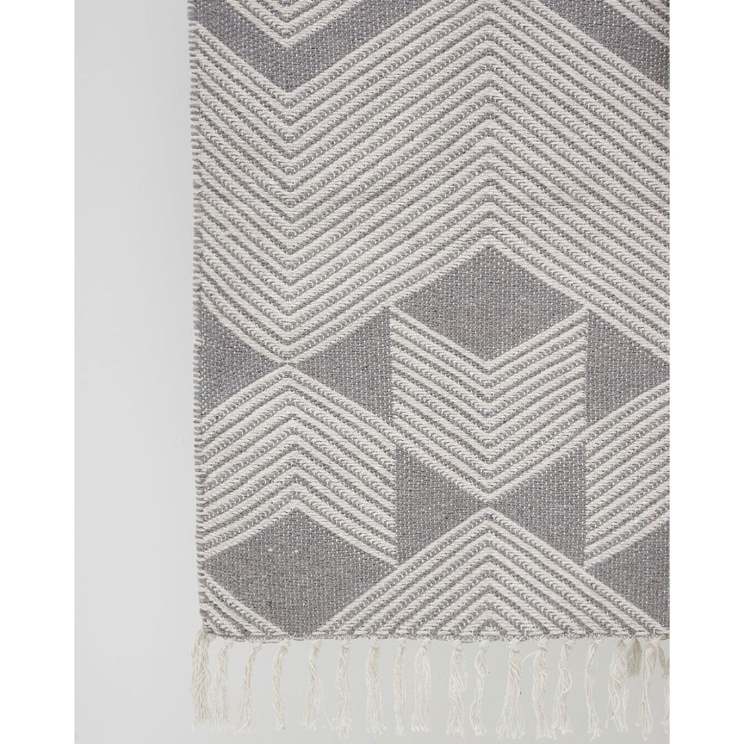 Μοντέρνο χαλάκι διπλής όψης με σχέδιο ρόμβους & κρόσσι, από 100% βαμβάκι.
