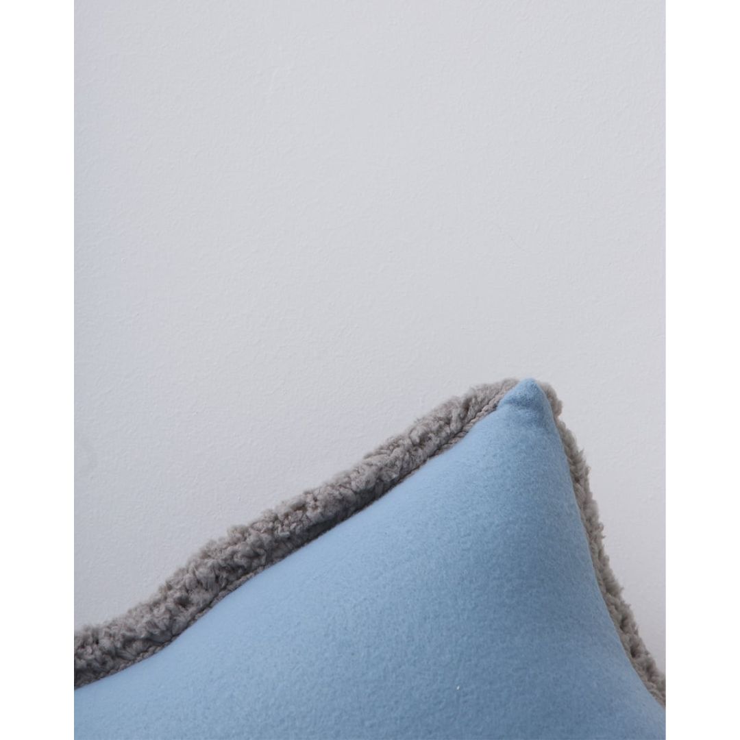 Διακοσμητική μαξιλαροθήκη διπλής όψης, σε συνδυασμό δύο υφών. *Σας προτείνουμε να επιλέξετε γέμιση μαξιλαριού κατά 5 εκατοστά μεγαλύτερη από τη θήκη, για πιο γεμάτο αποτέλεσμα.