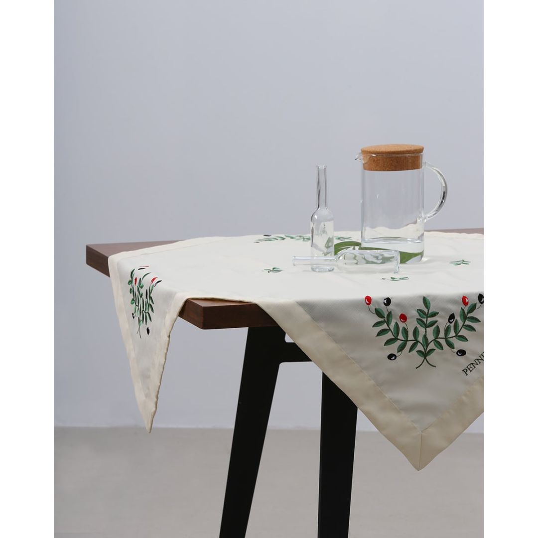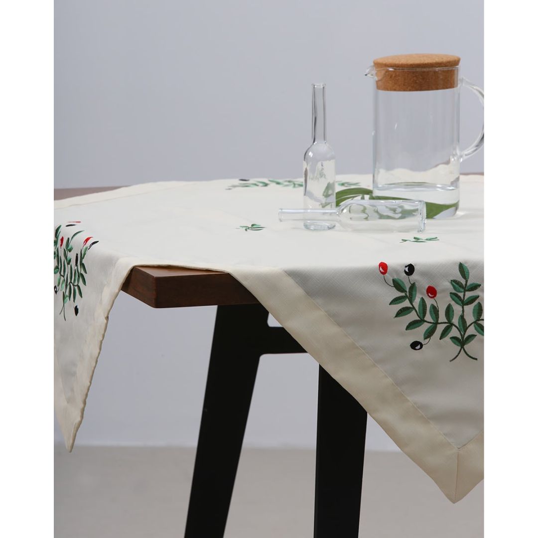 Διακοσμητικό Καρέ με Κέντημα Κλαδί Ελιάς Olive 100x100cm 2 ατόμων | 100x100cm Εκρού