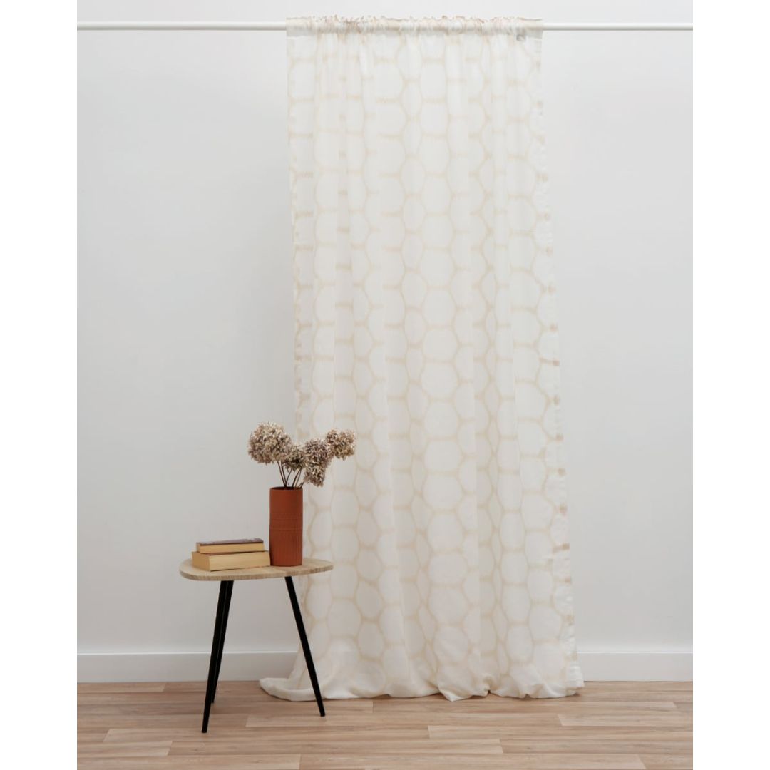 Αέρινη έτοιμη ραμμένη ημιδιαφανής δίχρωμη κουρτίνα με 8 εκατοστά τρέσσα, τούνελ και σχέδιο μεγάλες κυψέλες, από σύμμεικτο ύφασμα.