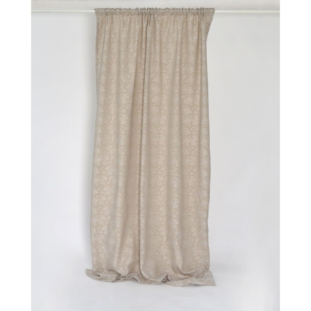 Ζακάρ έτοιμη ραμμένη κουρτίνα με γυαλιστερή υφή και περίτεχνα σχέδια και 8 εκατοστά τρέσσα, από σύμμεικτο βαμβάκι.