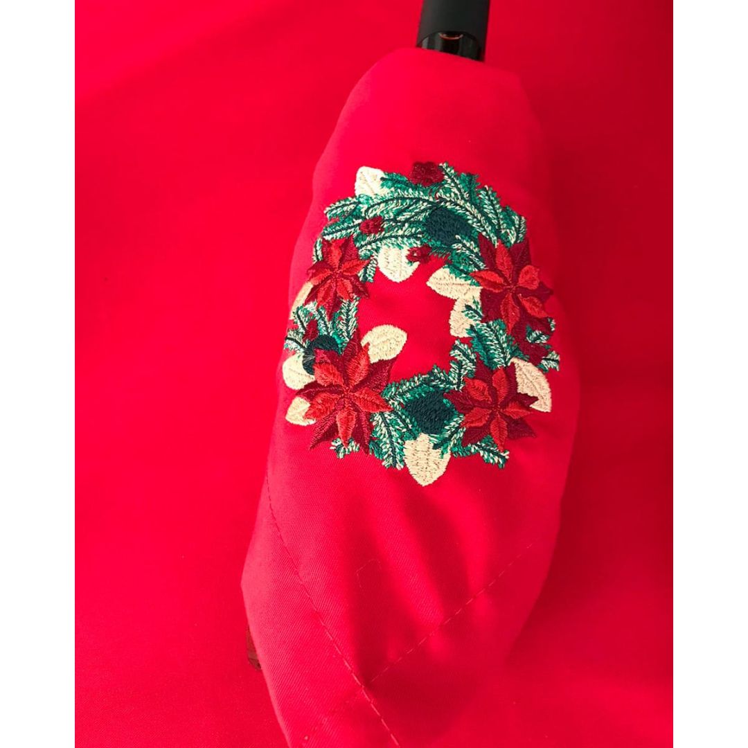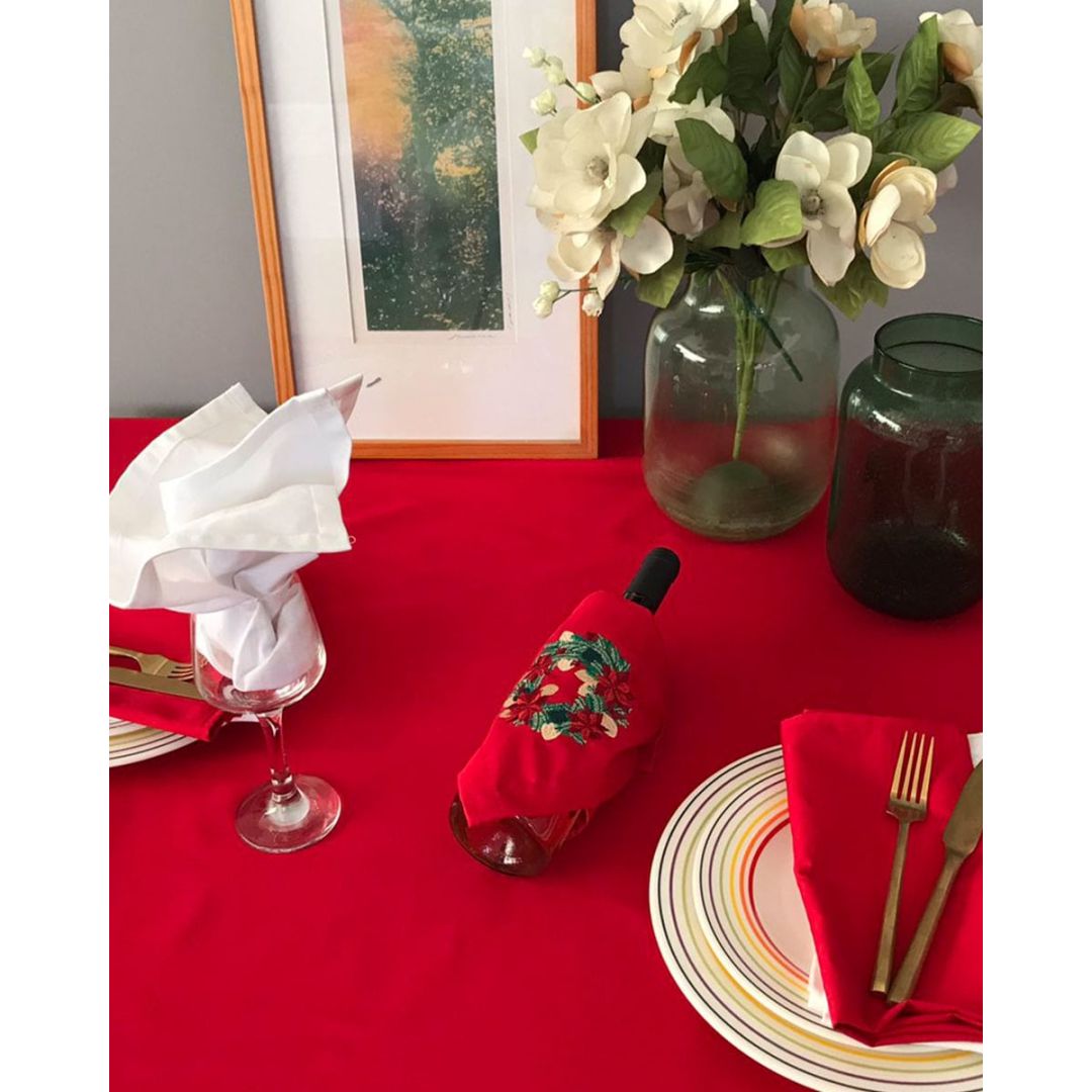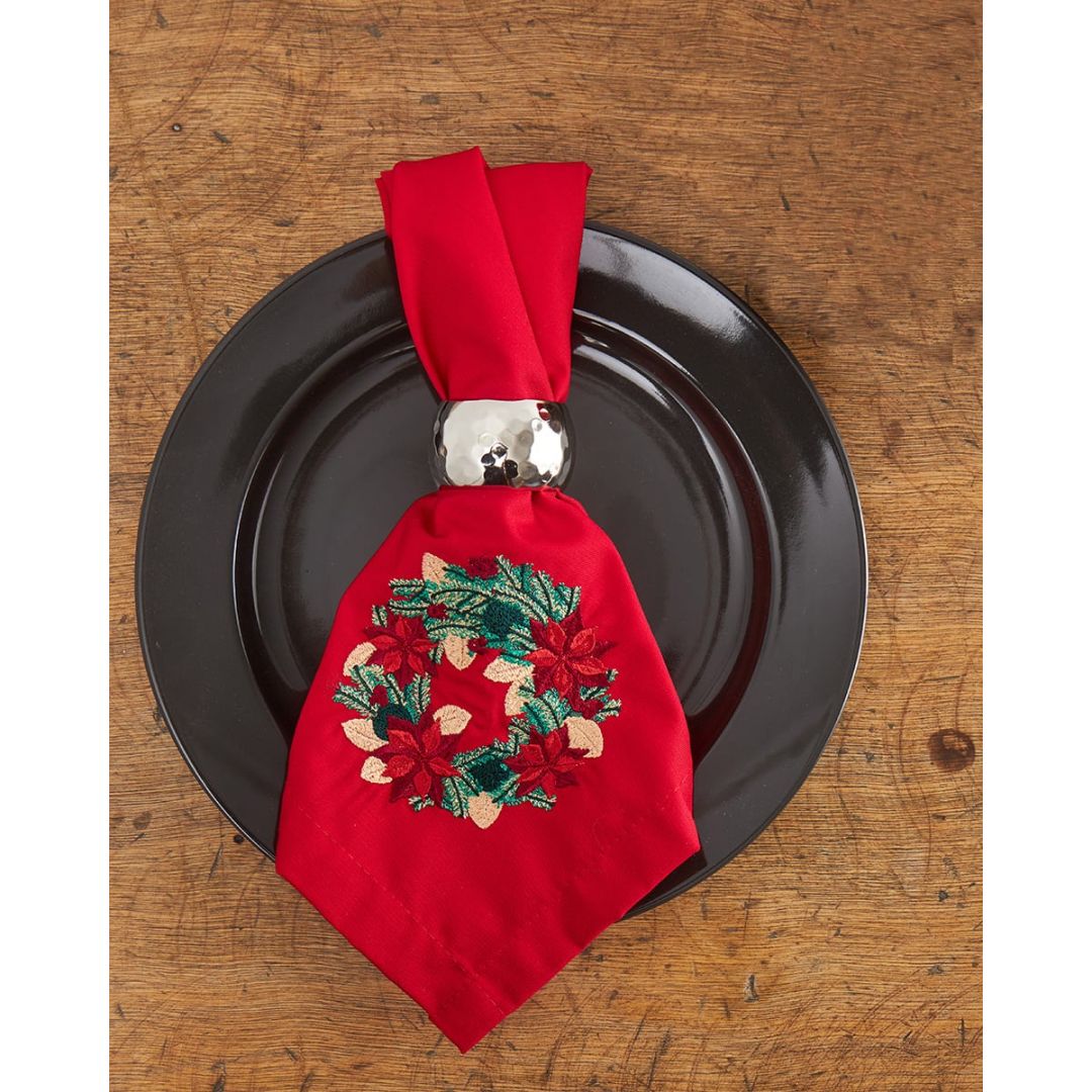 Μονόχρωμη πετσέτα φαγητού με κέντημα χριστουγεννιάτικο στεφανάκι, από σύμμεικτο βαμβάκι.
