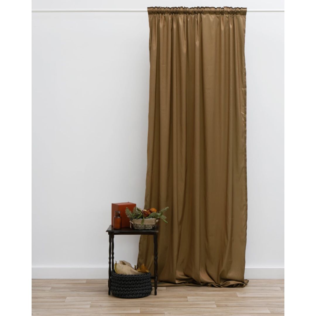 Έτοιμη ραμμένη κουρτίνα με 8 εκατοστά τρέσσα και τούνελ, από 100% polyester. Διατίθεται σε δύο διαστάσεις, στενό φύλλο 145x275cm & φαρδύ φύλλο 250x275cm.