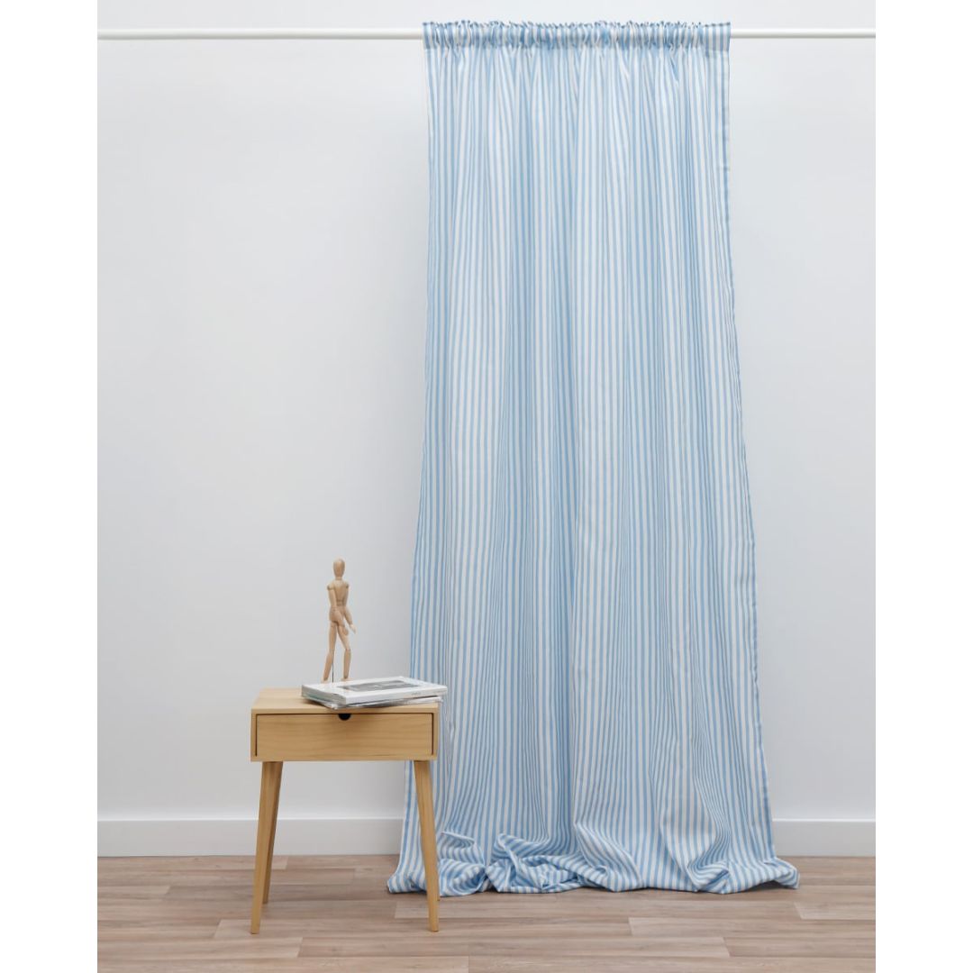 Κουρτίνα με ριγέ σχέδιο και 8 εκατοστά τρέσσα, από σύμμεικτο βαμβάκι. Διατίθεται σε 3 διαστάσεις: Παραθύρου 140x140cm, στενό φύλλο 140x280cm & φαρδύ φύλλο 170x280cm.