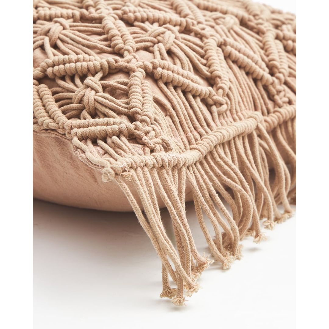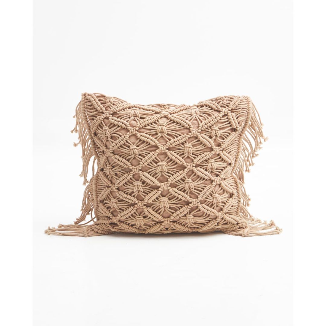 Boho μακραμέ μαξιλαροθήκη φιγούρας, από 100% βαμβάκι. * Tοπικό καθάρισμα με πανάκι, στεγνό καθάρισμα μόνο. Σας προτείνουμε να επιλέξετε γέμιση μαξιλαριού κατά 5 εκατοστά μεγαλύτερη από τη θήκη, για πιο γεμάτο αποτέλεσμα.