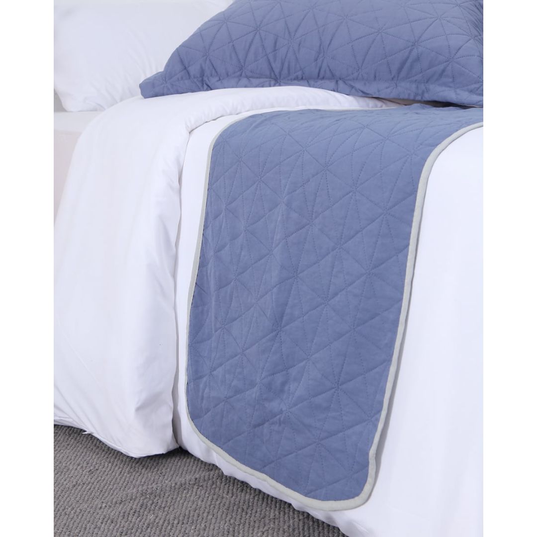 Jersey τραβέρσα διπλής όψης γκρι-blue jean και γκρι-ανθρακί. Κατασκευασμένη με την νέα τεχνική καπιτονέ. Η μια πλευρά είναι σε poly-blend μακό jersey και η δεύτερη όψη σε microsilk.