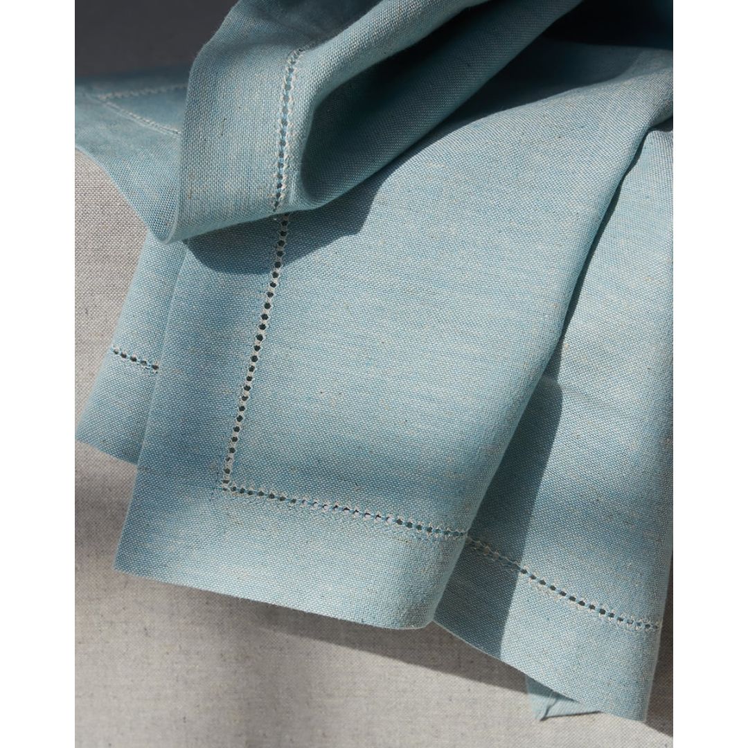 Πετσέτα φαγητού μονόχρωμη με αζούρ στο τελείωμα, από σύμμεικτο λινό ύφασμα.