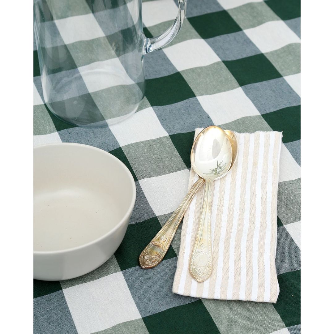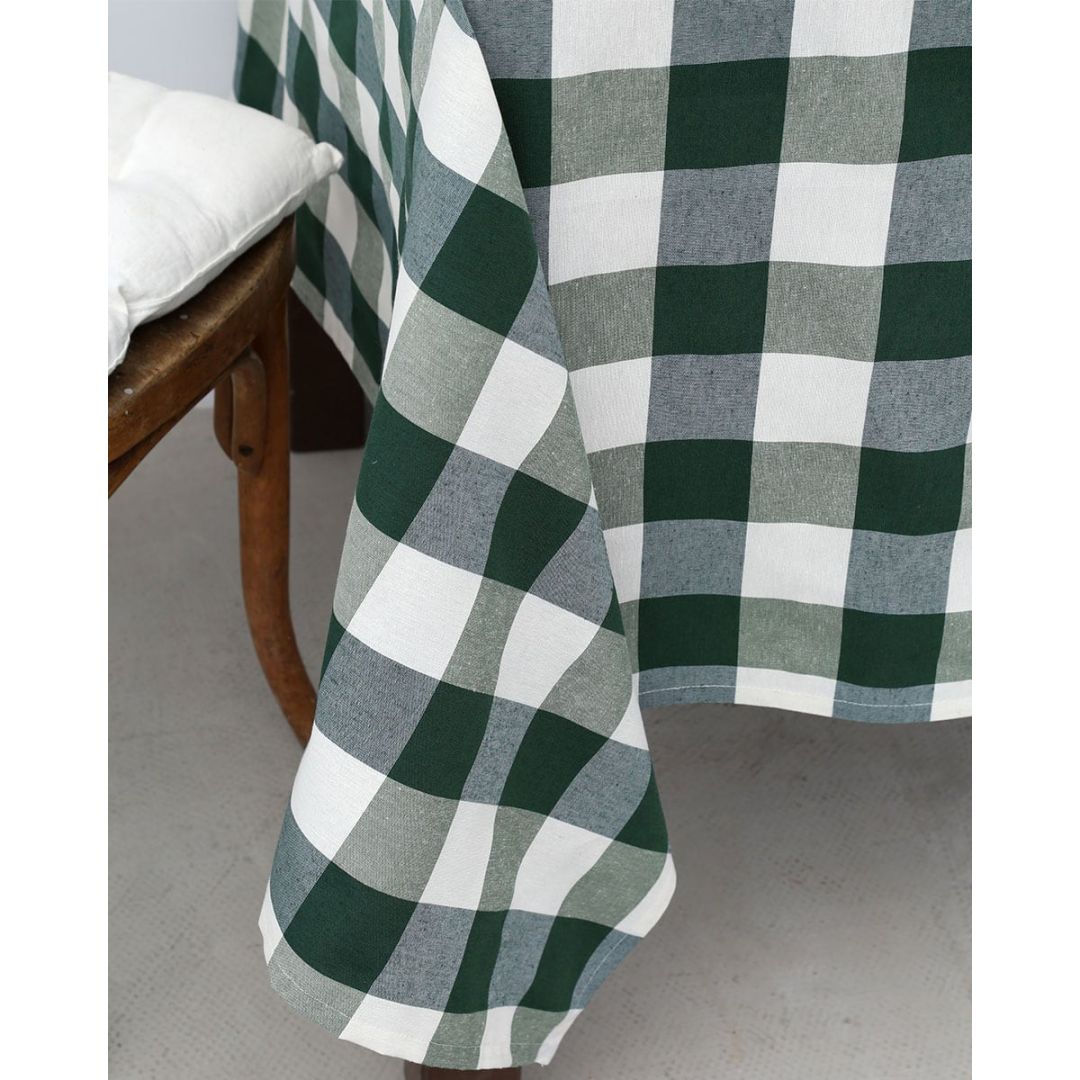 Τραπεζομάντηλο νηματοβαφή με μεγάλο καρώ σχέδιο 5,5x5,5cm σε όλη την επιφάνειά του, από σύμμεικτο βαμβάκι.