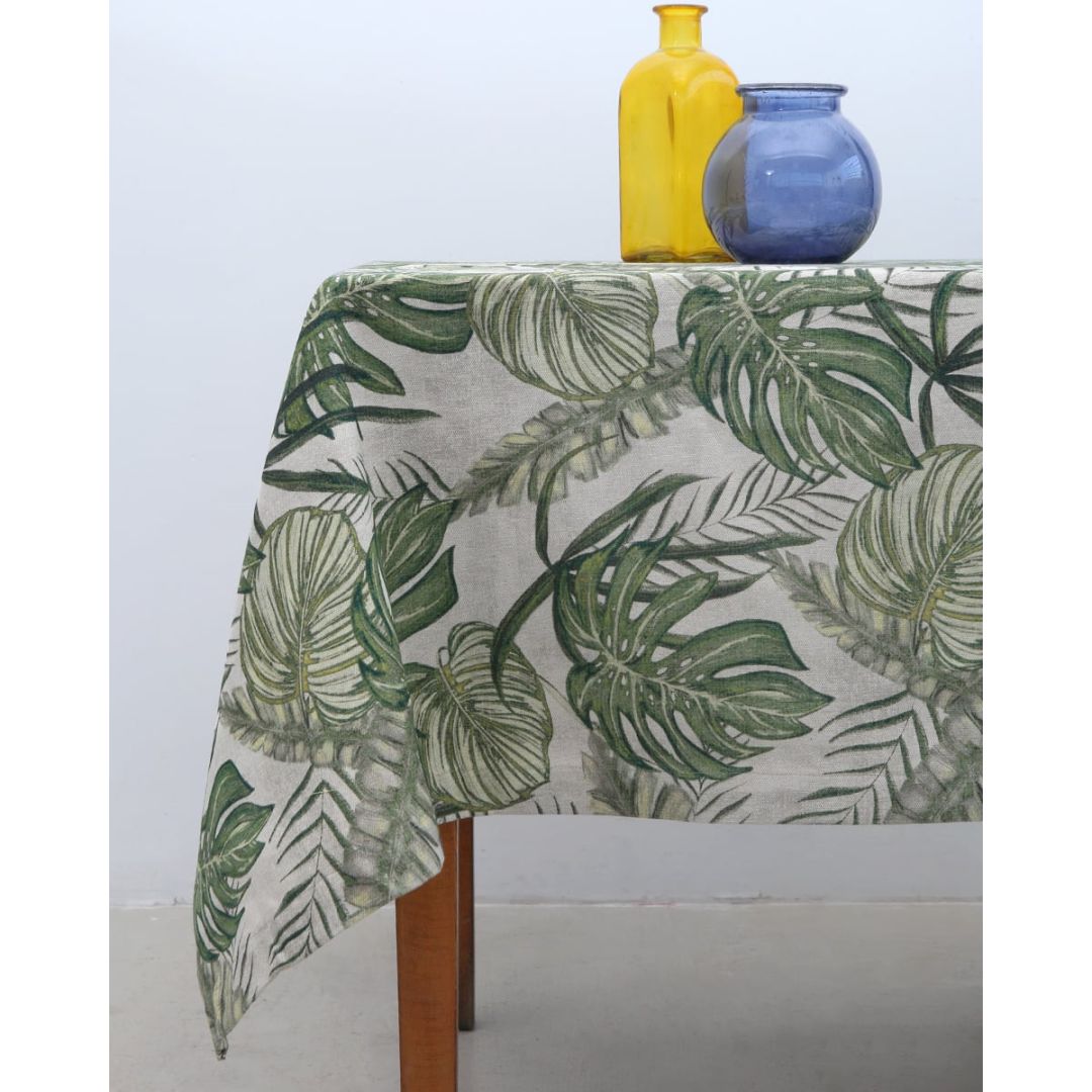 Λινό Εμπριμέ Τραπεζομάντηλο Monstera 12 ατόμων (165 x 280cm)