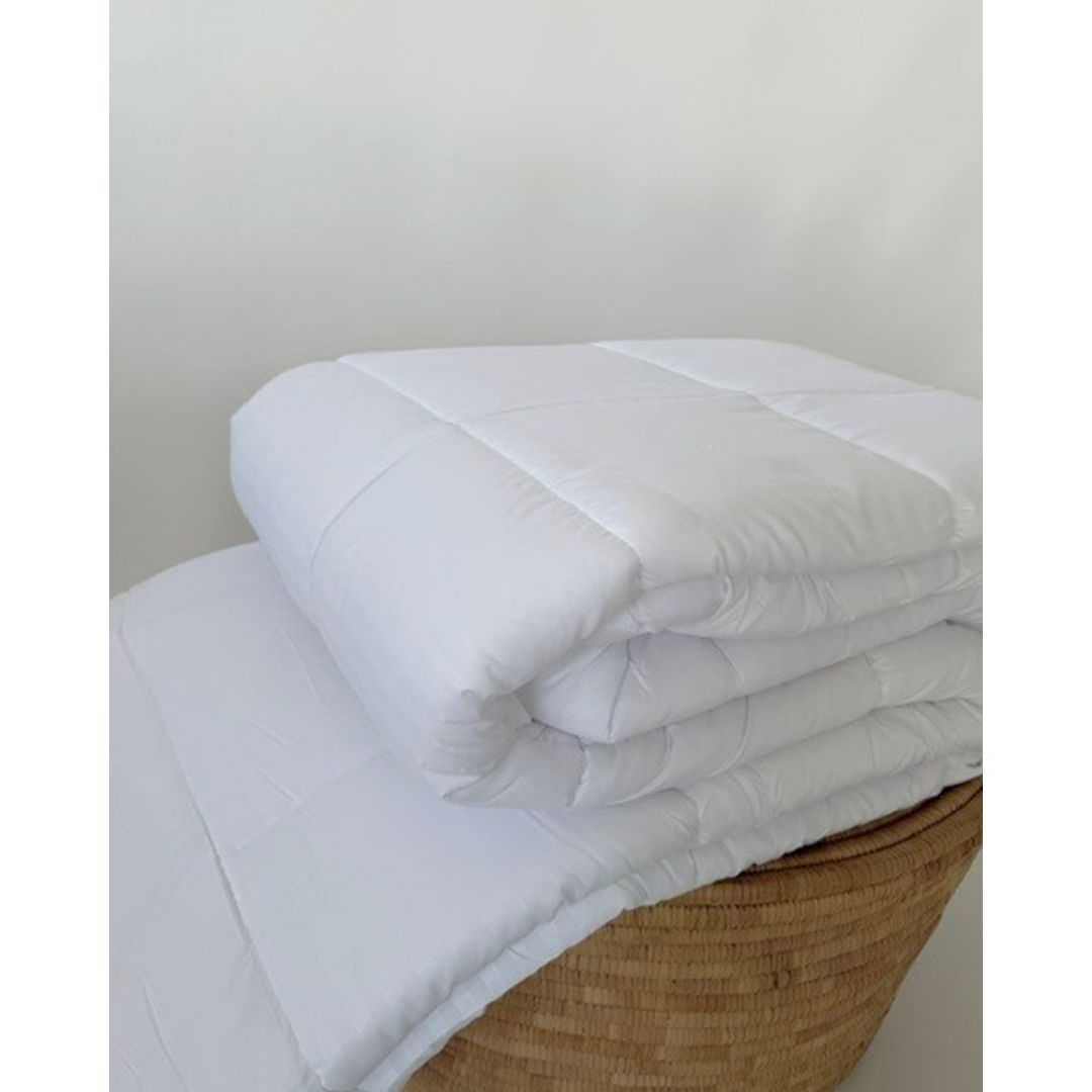Λευκό πάπλωμα με ρίγα και γέμιση από αντιαλλεργική βάτα σιλικόνης, με απαλή υφή, από 100% microfiber.