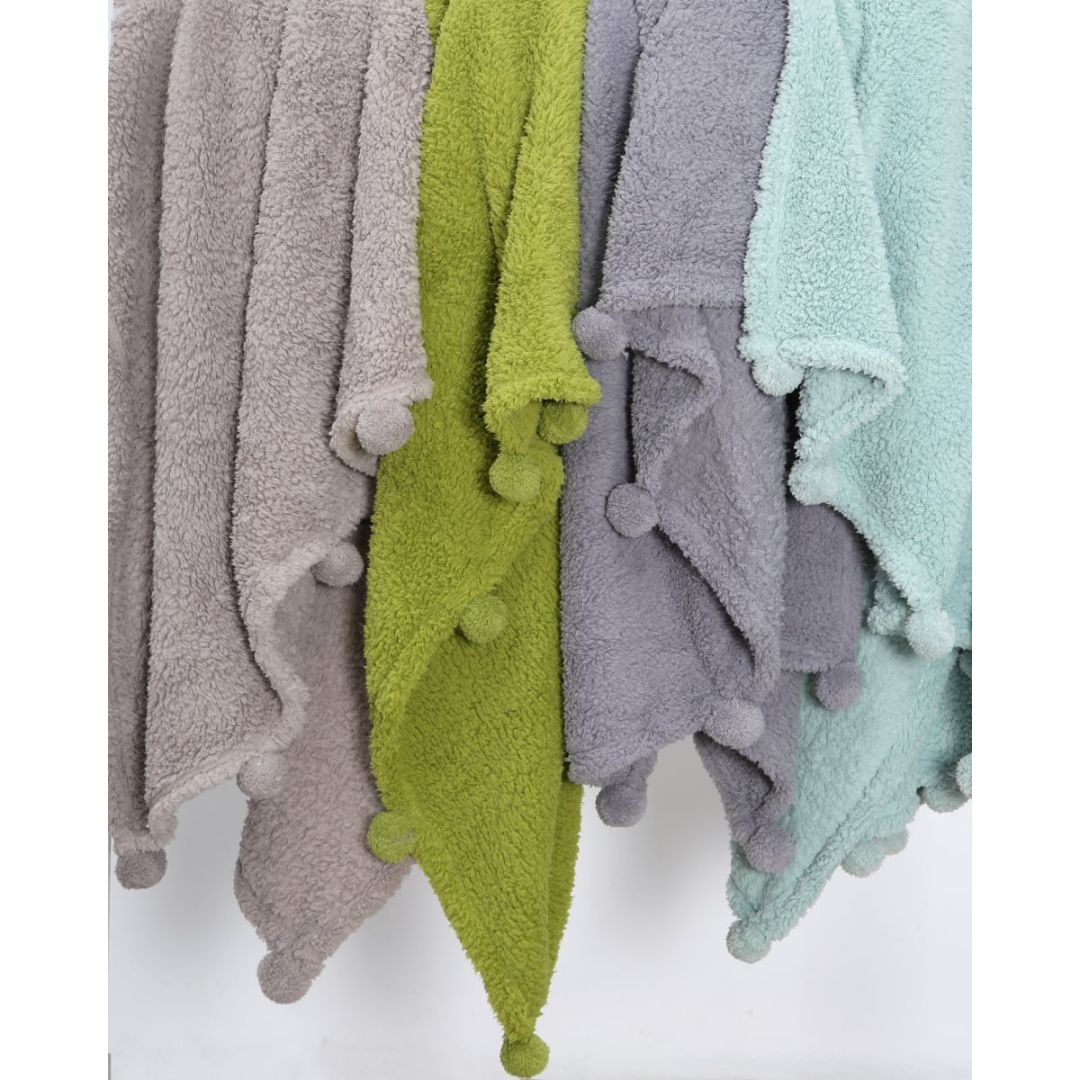 Μονόχρωμη Γούνινη Προβατάκι Κουβέρτα Καναπέ με Pompoms Papigo Καναπέ (120X160cm)