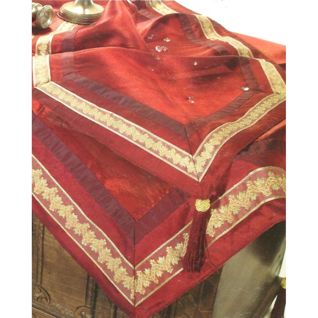 Διακοσμητικό πετσετάκι με χρυσή μπορντούρα και φουντίτσες στις γωνίες, από οργάντζα.