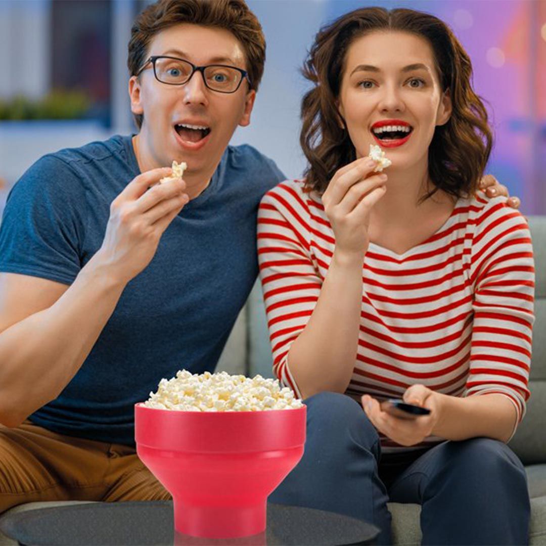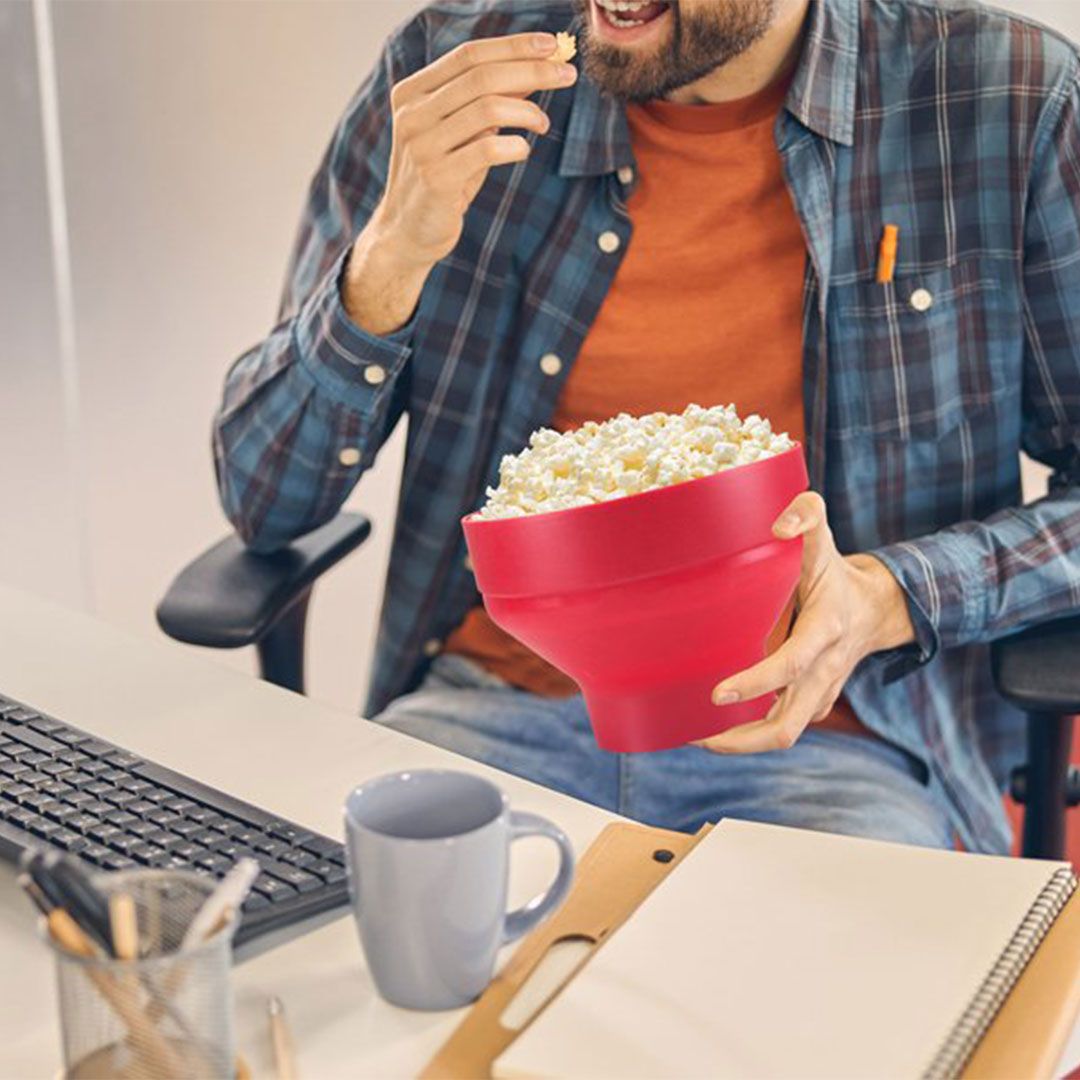 Μπορείτε να χρησιμοποιήσετε το δοχείο και ως μπολ για να σερβίρετε άνετα popcorn σε όλους. Και όταν τελειώσετε, μην ανησυχείτε, δεν πιάνει καθόλου χώρο, καθώς το μπολ διπλώνει και αποθηκεύεται εύκολα σε κάθε ντουλάπι.