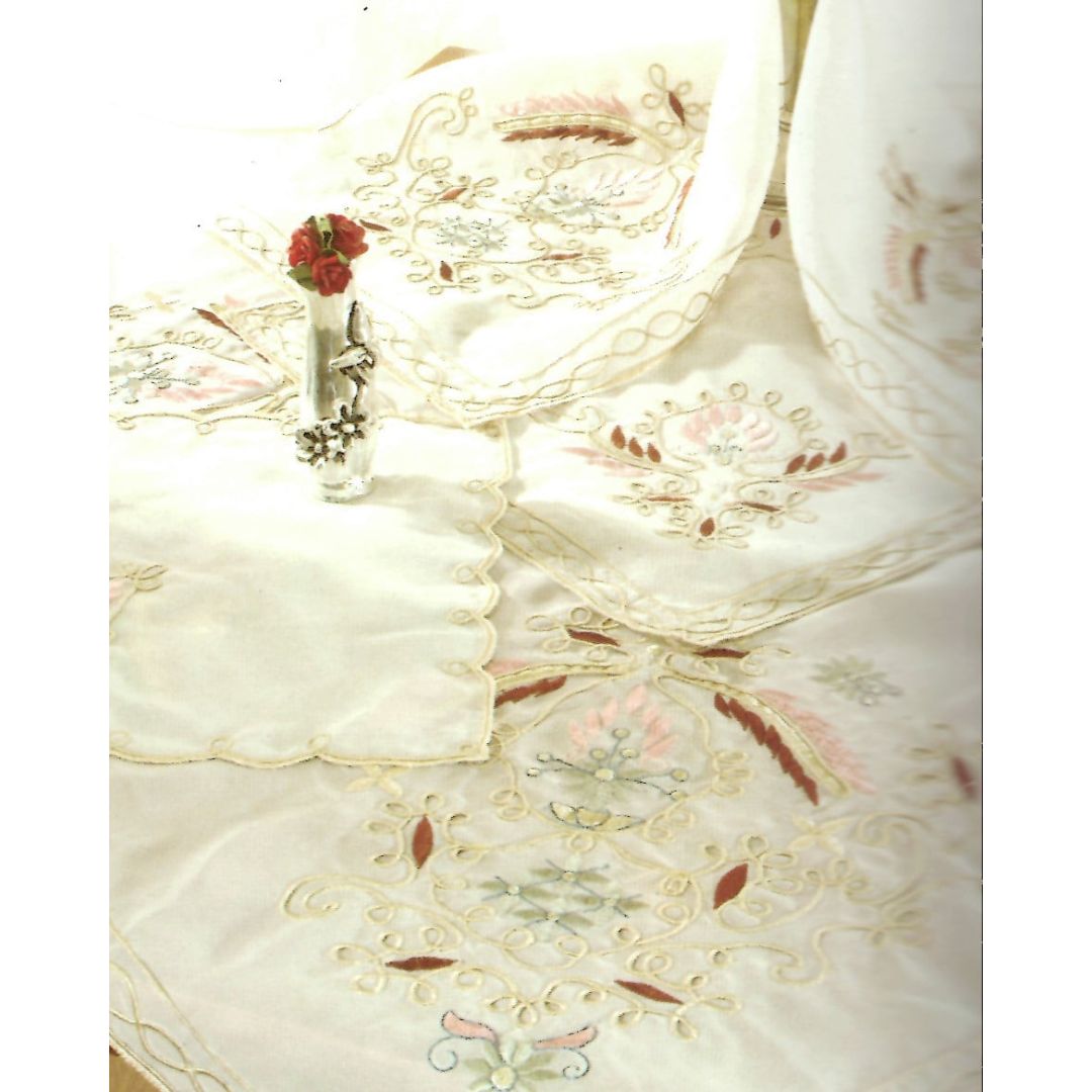 Διακοσμητικό πετσετάκι με κέντημα μπορντώ ανθάκια, από οργάντζα.