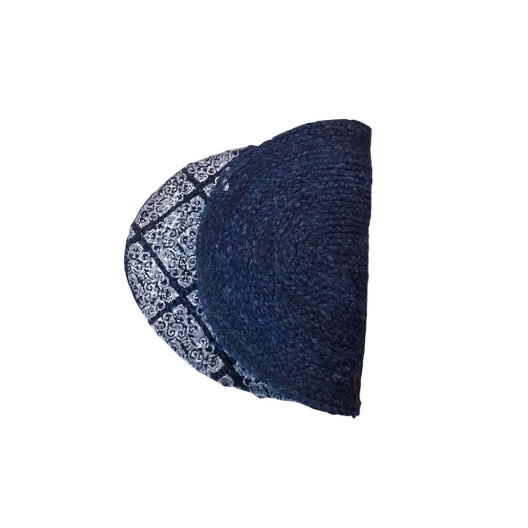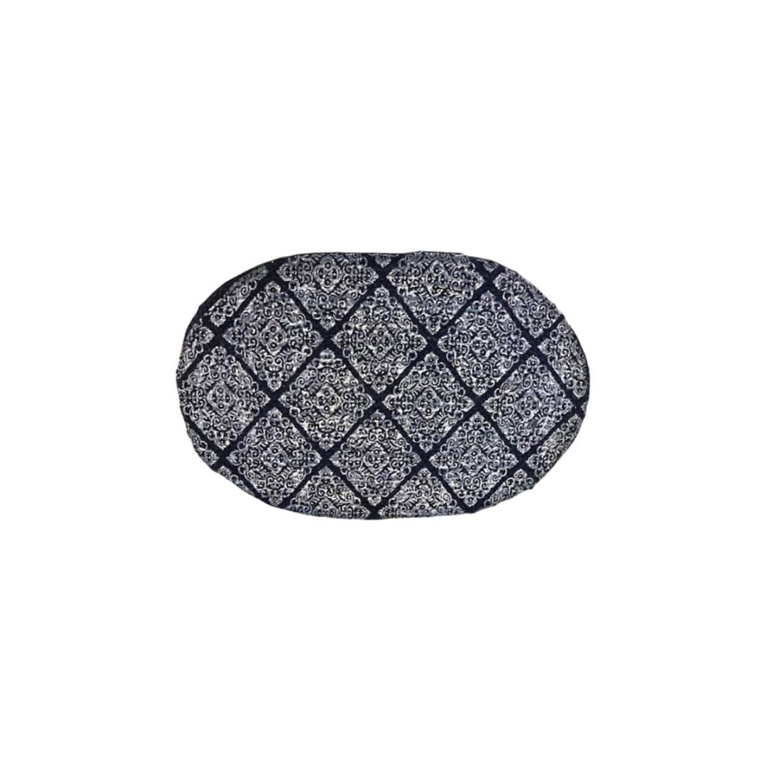 Ψάθα πλεκτό μπλε boho οικολογικό οβάλ χαλί εισόδου με άσπρο τύπωμα ρόμβους, από 100% ίνες του φυτού γιούτα.