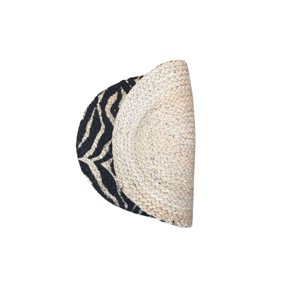 Ψάθα πλεκτό boho οικολογικό οβάλ χαλί εισόδου με μαύρο ζεβρέ τύπωμα, από 100% ίνες του φυτού γιούτα.