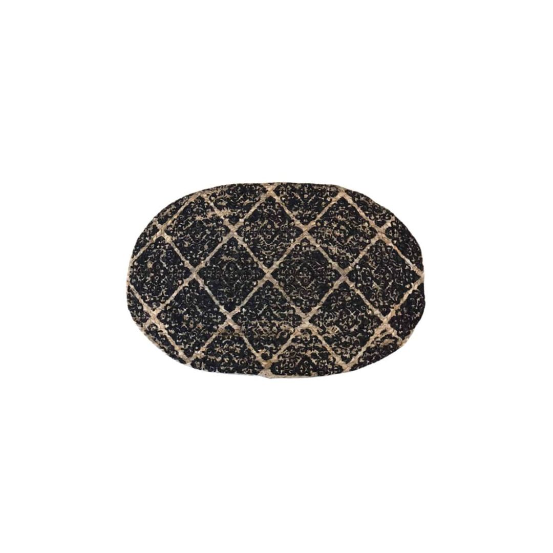 Ψάθα πλεκτό boho οικολογικό οβάλ χαλί εισόδου με μαύρο τύπωμα ρόμβους, από 100% ίνες του φυτού γιούτα.