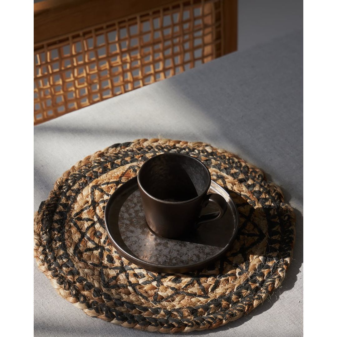 Ψάθα πλεκτό μπεζ οικολογικό boho σουπλά,Sous plate με μαύρο τύπωμα ομόκεντρα σχέδια, από 100% ίνες του φυτού γιούτα. Διαθέσιμο σε διάμετρο 30cm.