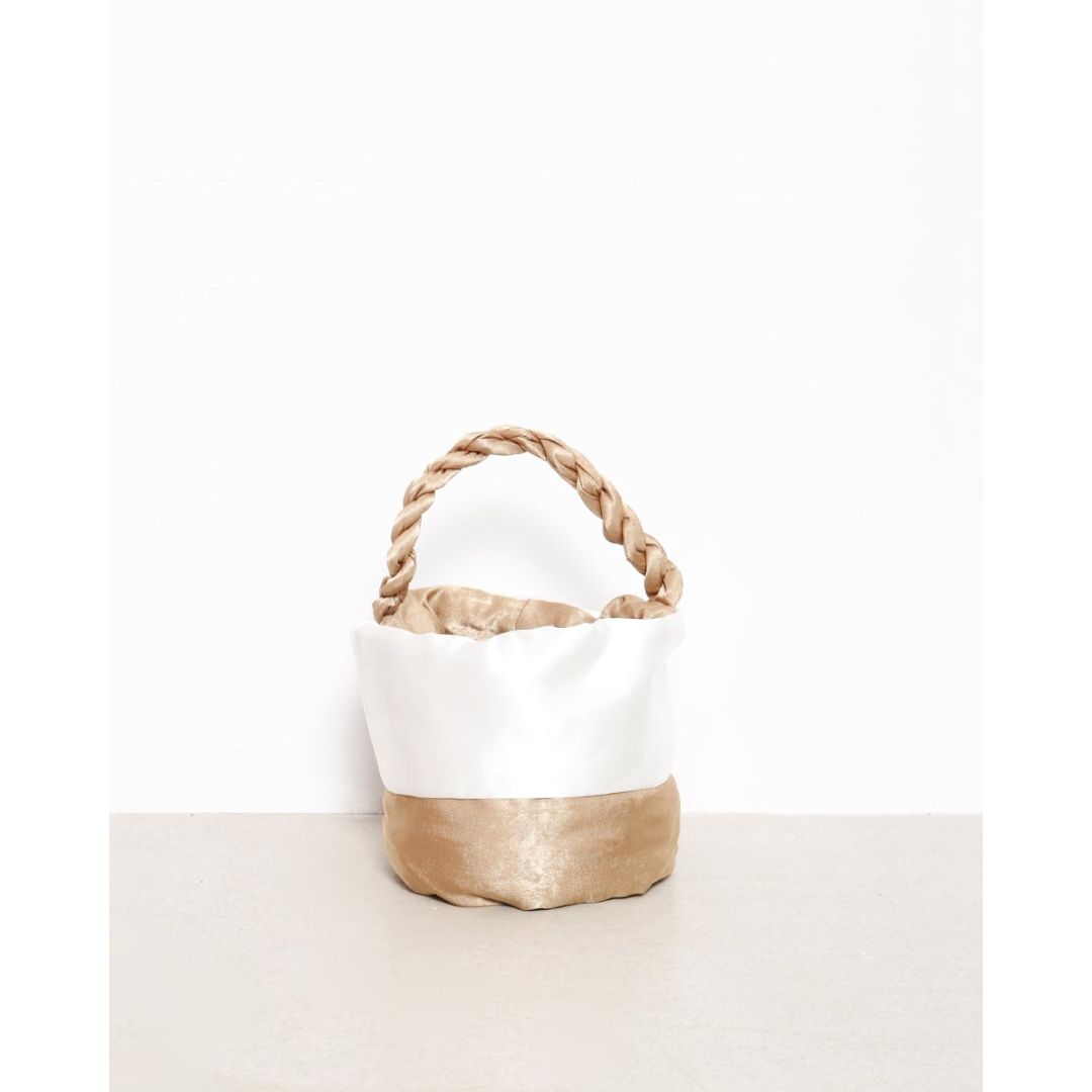 Δίχρωμο πουγκάκι με χεράκι, για δώρα, καλλυντικά, αξεσουάρ, από 100% σατέν. Σε 3 χρώματα μπορντώ,μπέζ-χρυσό, σομόν-χρυσό.