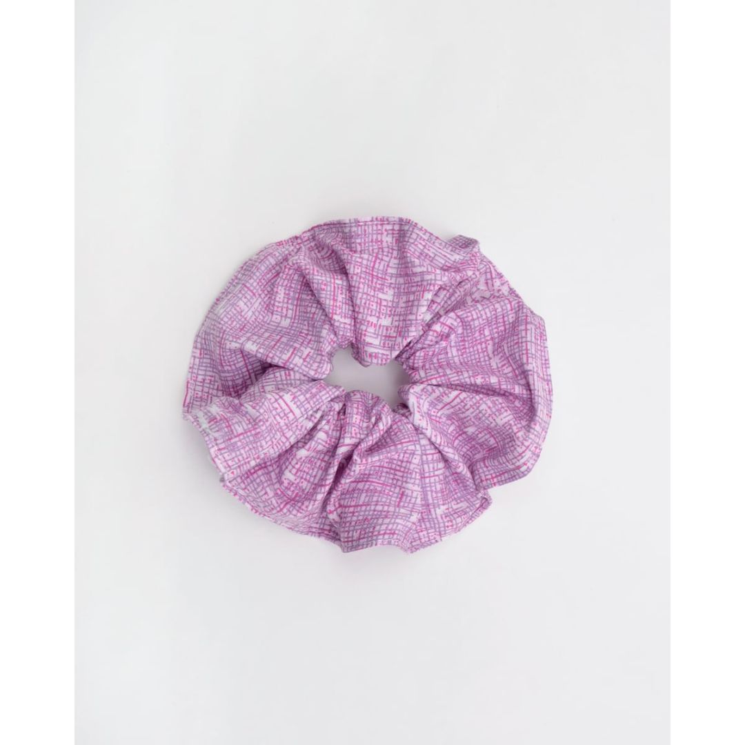 Μωβ scrunchies με αφηρημένο σχέδιο, από 100% βαμβάκι.
