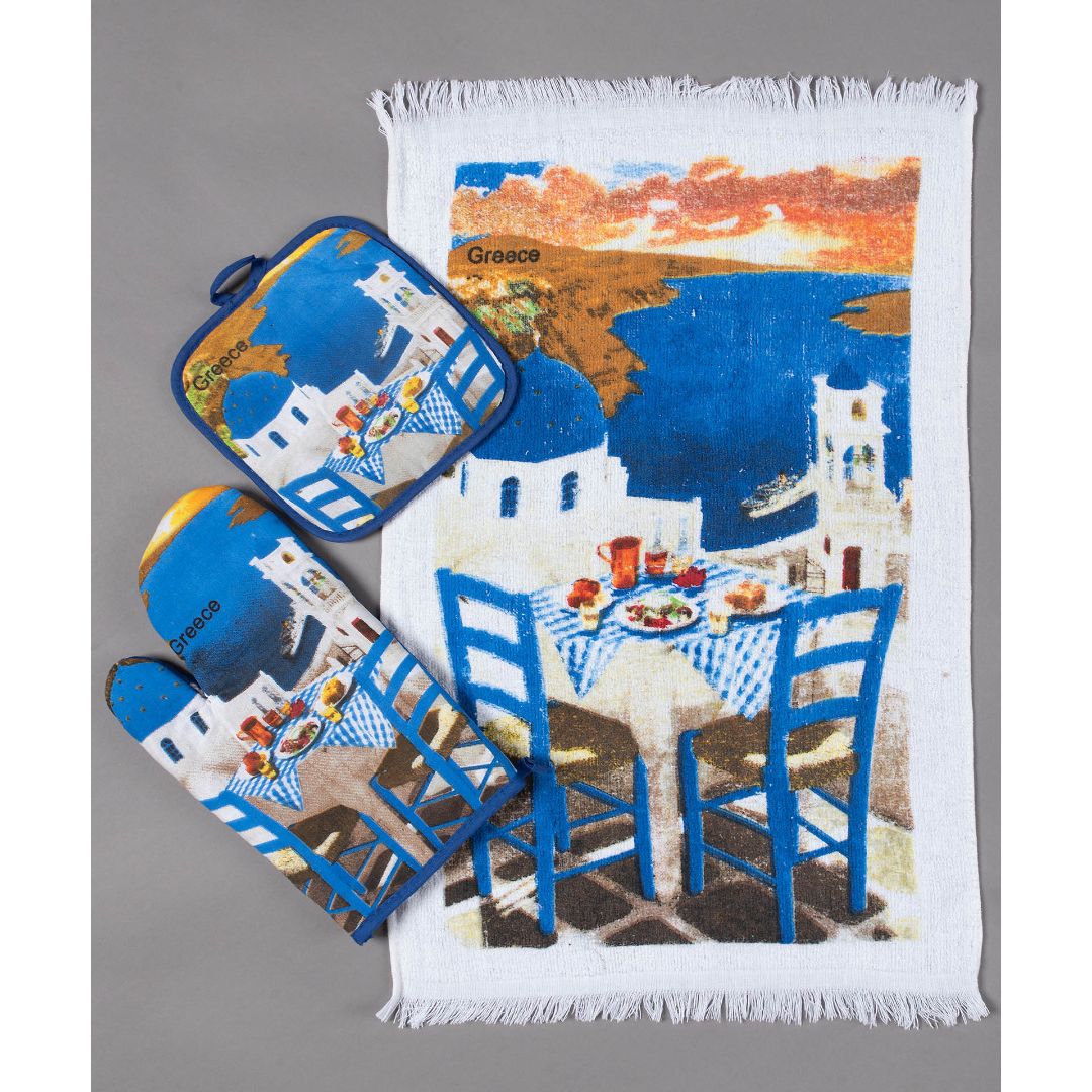 Σετ 3 τεμαχίων γάντι πιάστρα ποτηρόπανο GREECE1