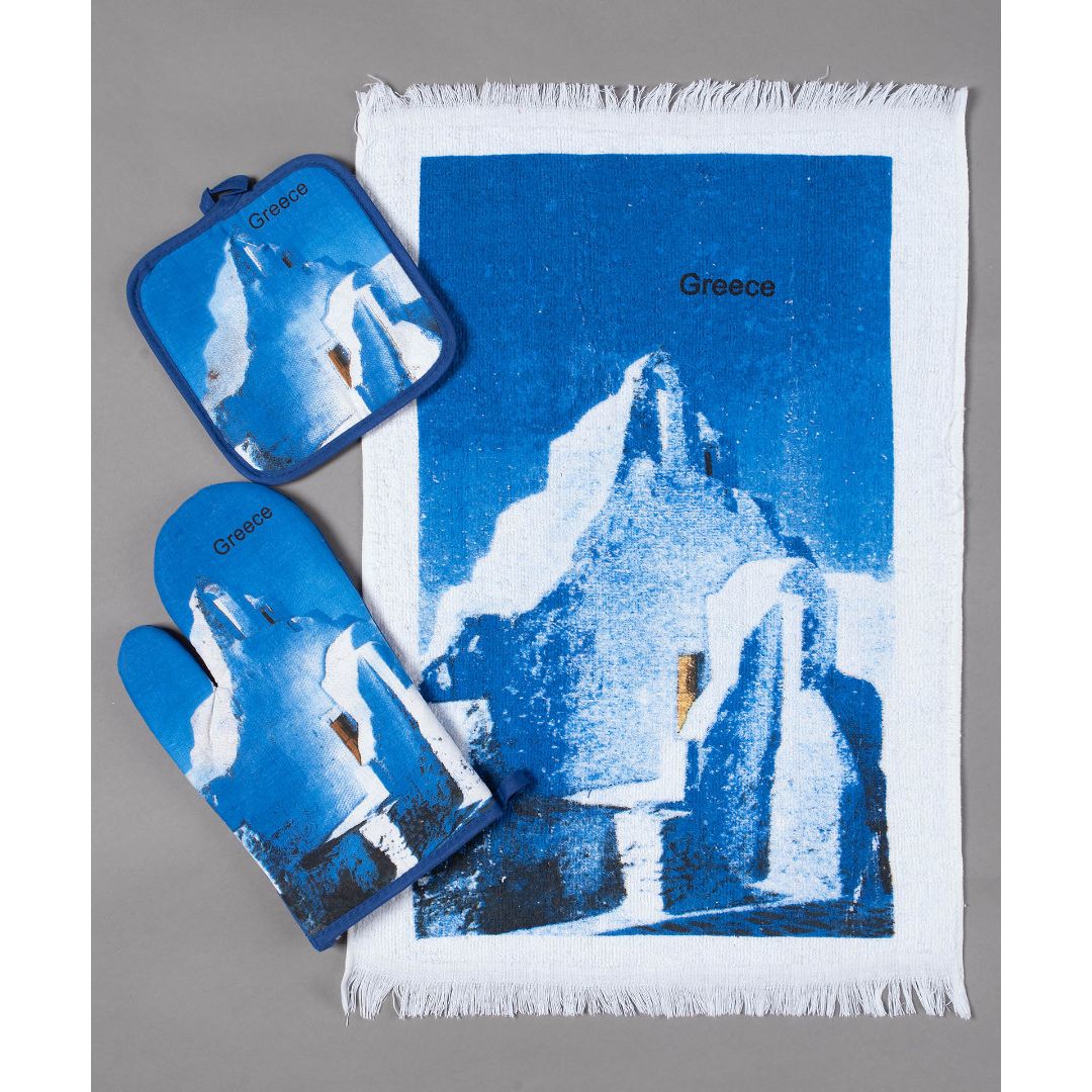 Σετ 3 τεμαχίων γάντι πιάστρα ποτηρόπανο GREECE2