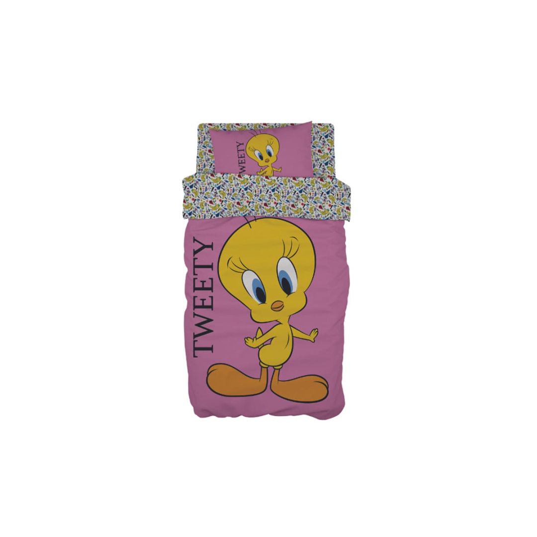 Σετ τριών τεμαχίων Warner Bros, δυο παιδικά σεντόνια 165x250cm και μια μαξιλαροθήκη 52x72+1cm, με παράσταση Tweety, από σύμμεικτο βαμβάκι.