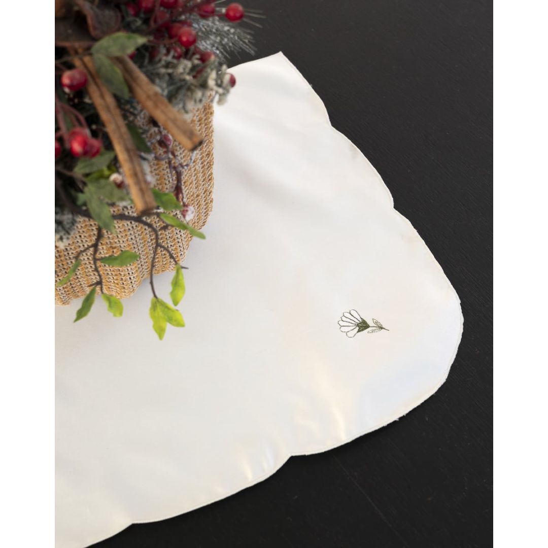 Σετ εκρού πετσέτες φαγητού (Διαστάσεις: Δείτε τις εδώ) με κέντημα λευκή μαργαρίτα.