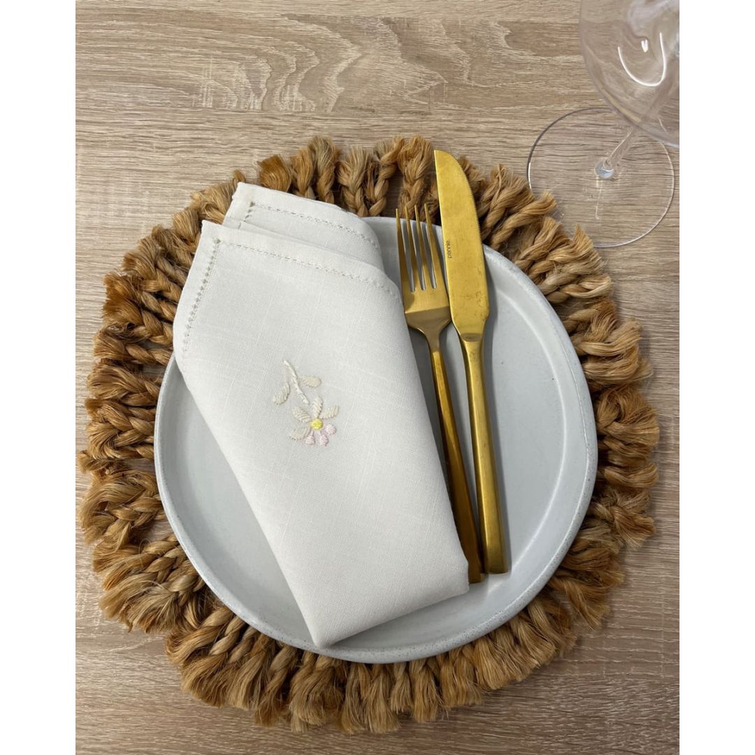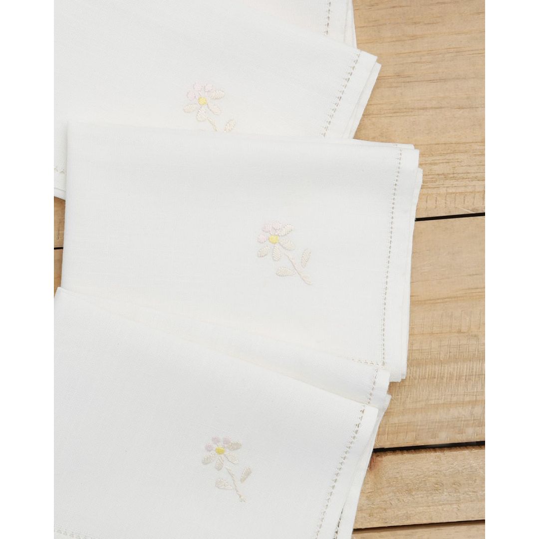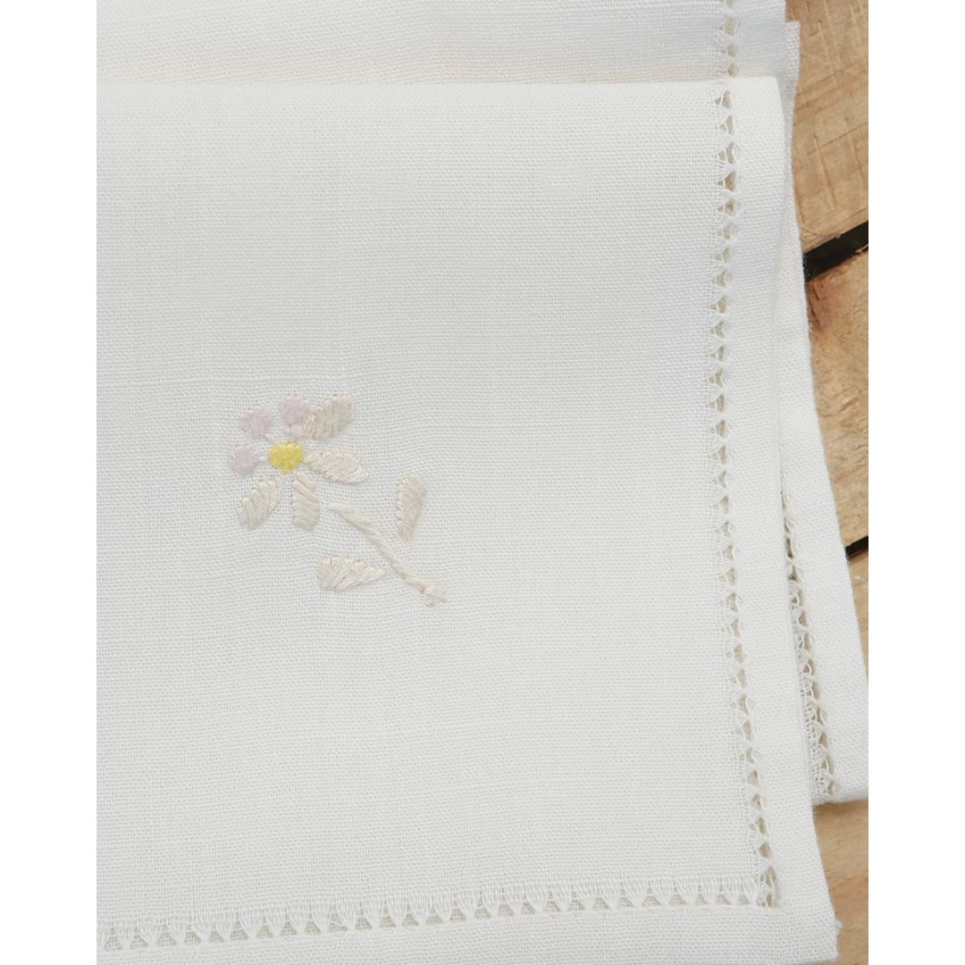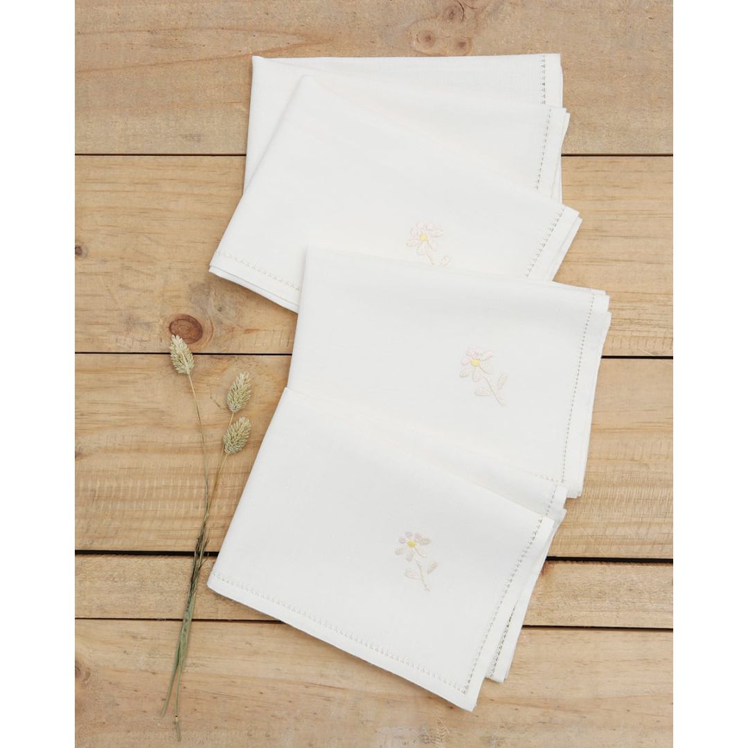 Σετ πετσέτες φαγητού (Διαστάσεις: Δείτε τις εδώ) με κέντημα μαργαρίτα και χειροποίητο αζούρ στο τελείωμα, από σύμμεικτο λινό.