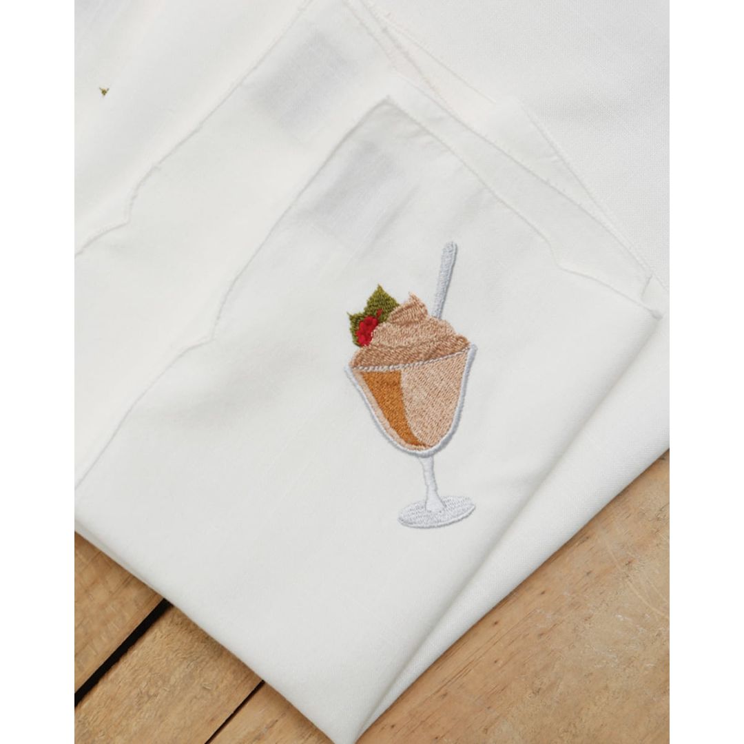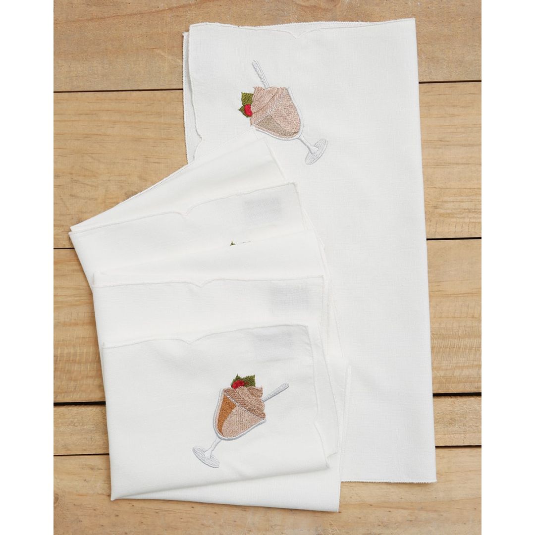 Σετ 4 τεμαχίων πετσέτες φαγητού με κέντημα παγωτό, από λινό ύφασμα.