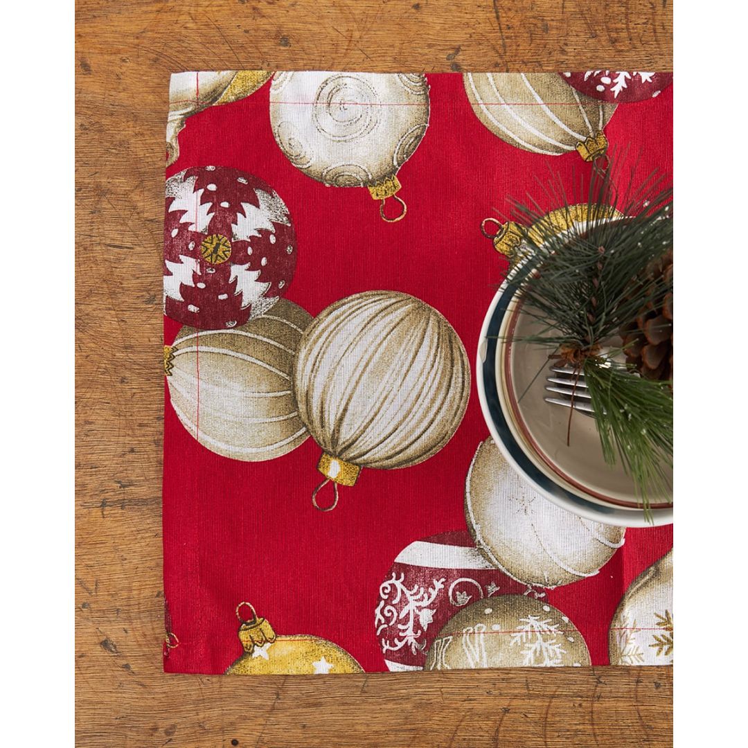 Χριστουγεννιάτικο σουπλά με σχέδιο στολίδια, από σύμμεικτο βαμβάκι.