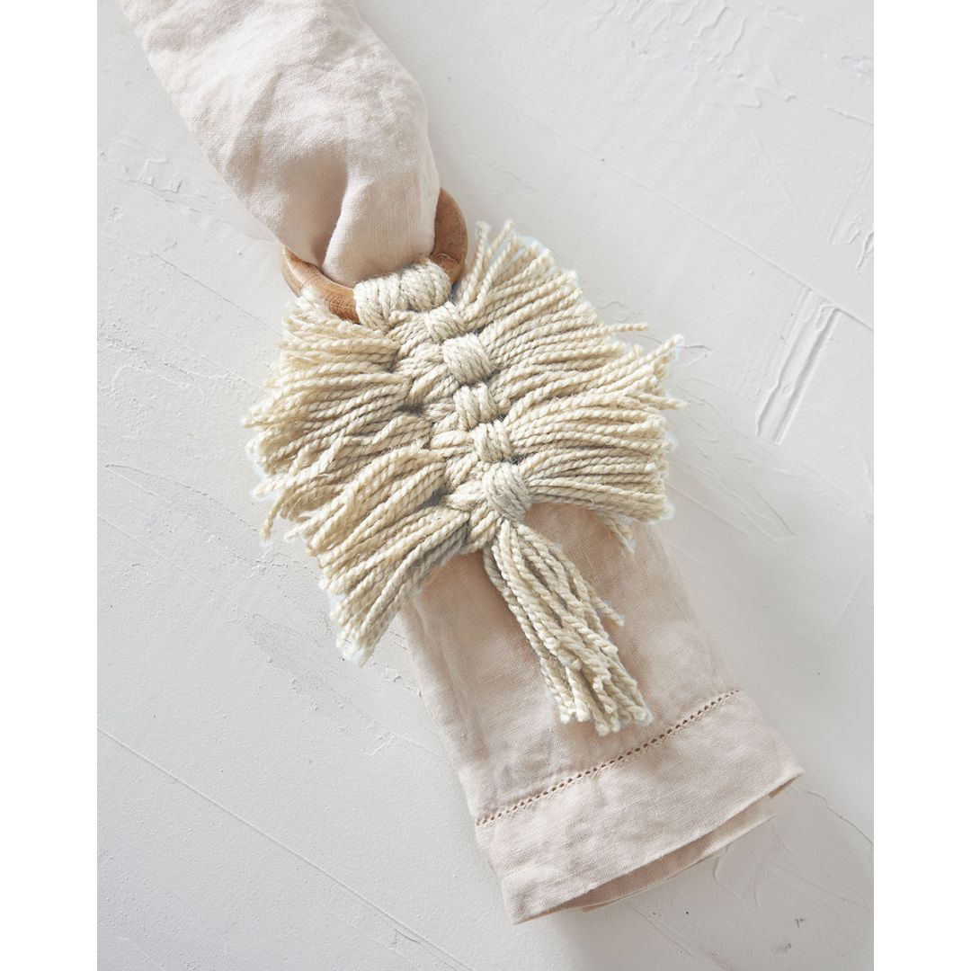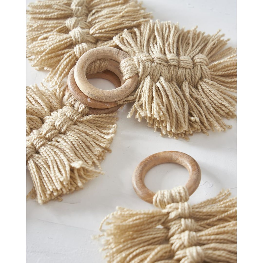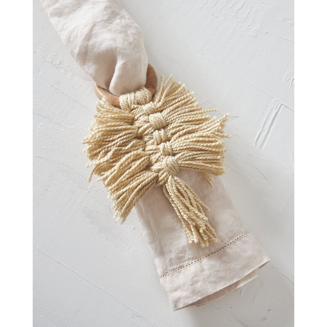 Ξύλινο Δαχτυλίδι Πετσέτας Φαγητού Κρίκος με Μακραμέ Reid 10x10x7cm One Size (10x10x7cm)