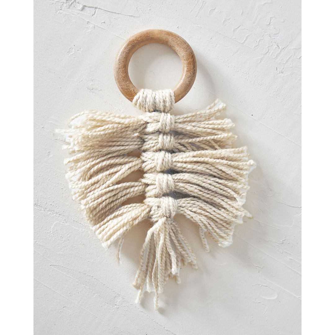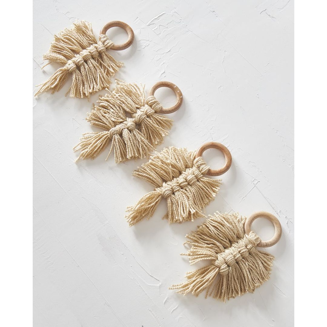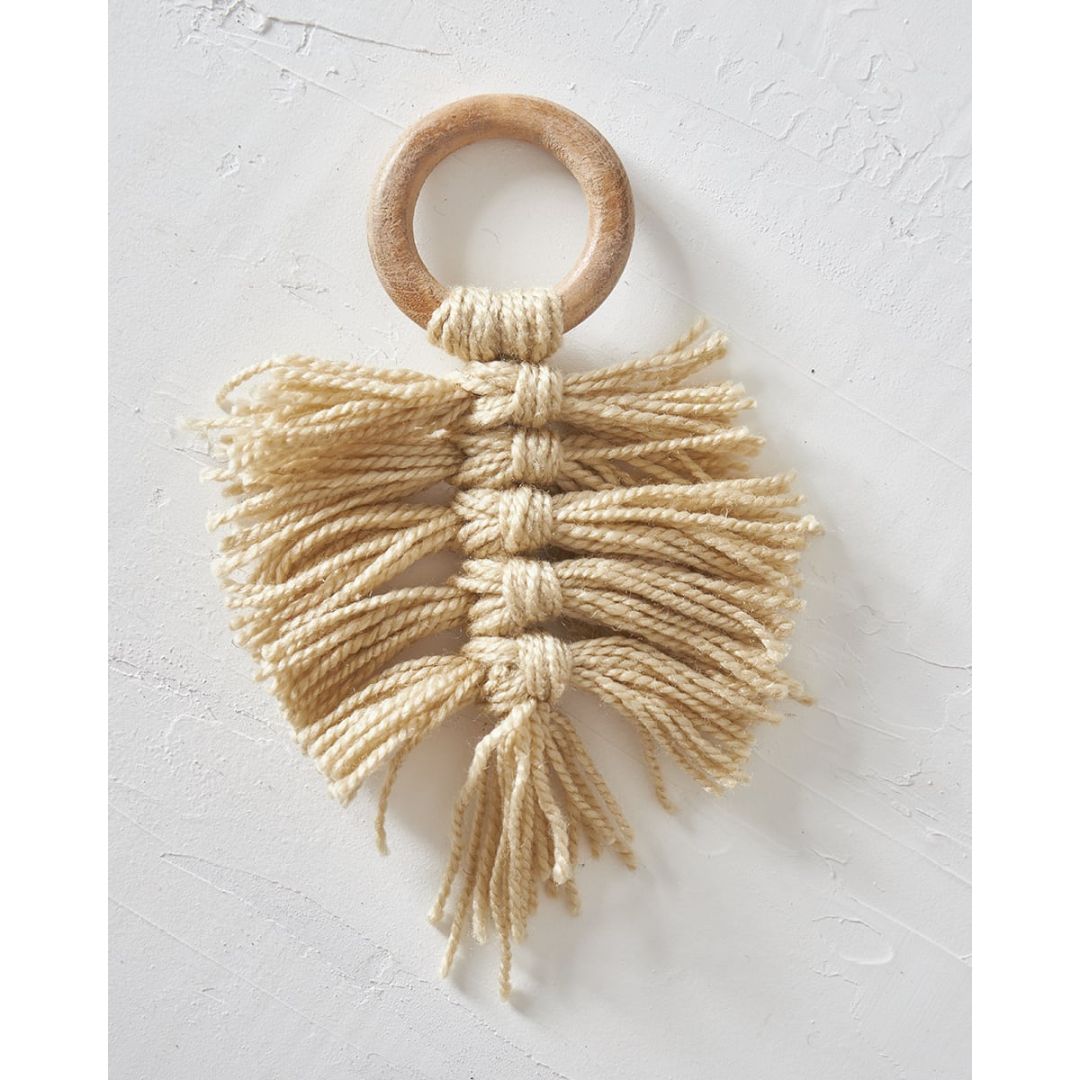 Ξύλινο Δαχτυλίδι Πετσέτας Φαγητού Κρίκος με Μακραμέ Reid 10x10x7cm One Size (10x10x7cm)