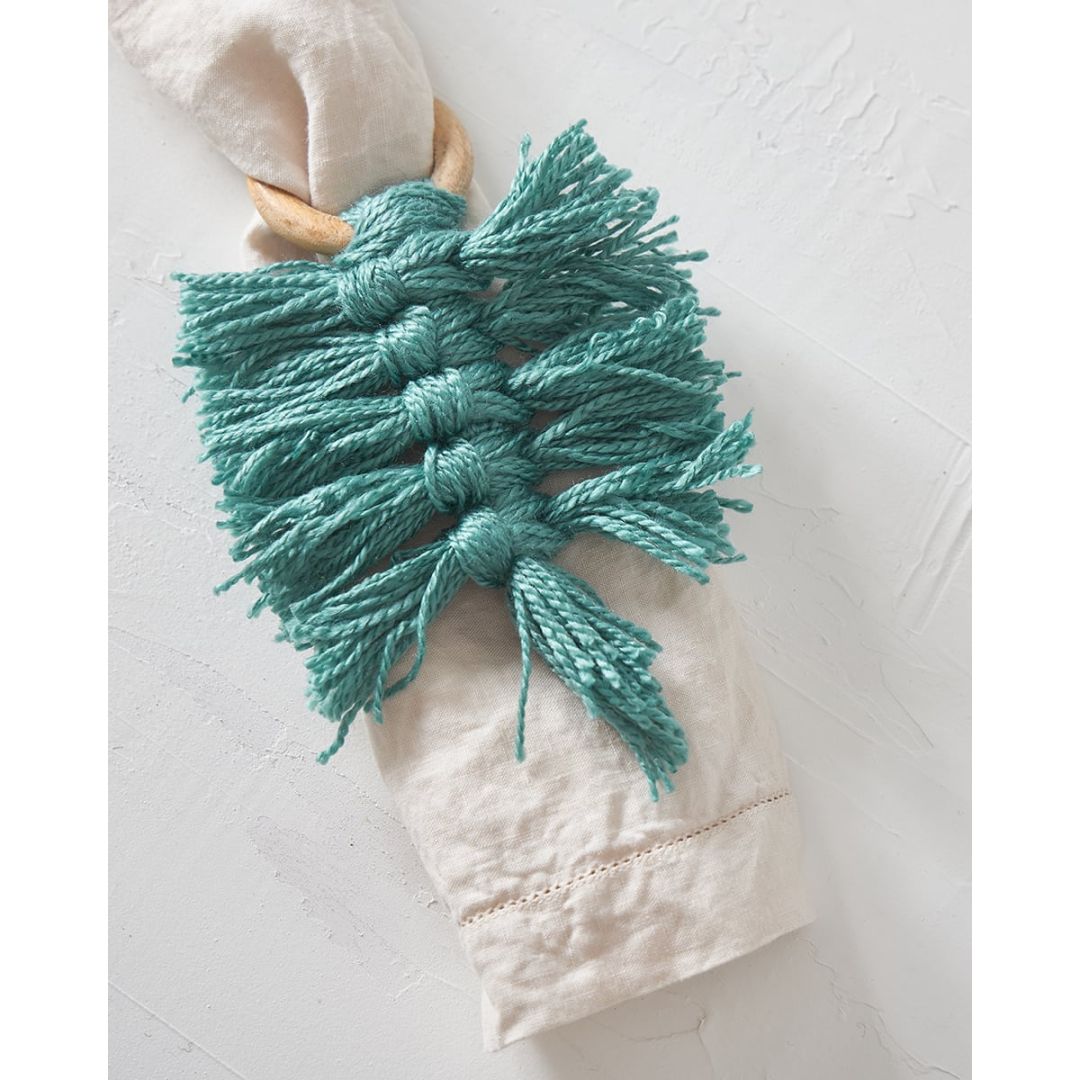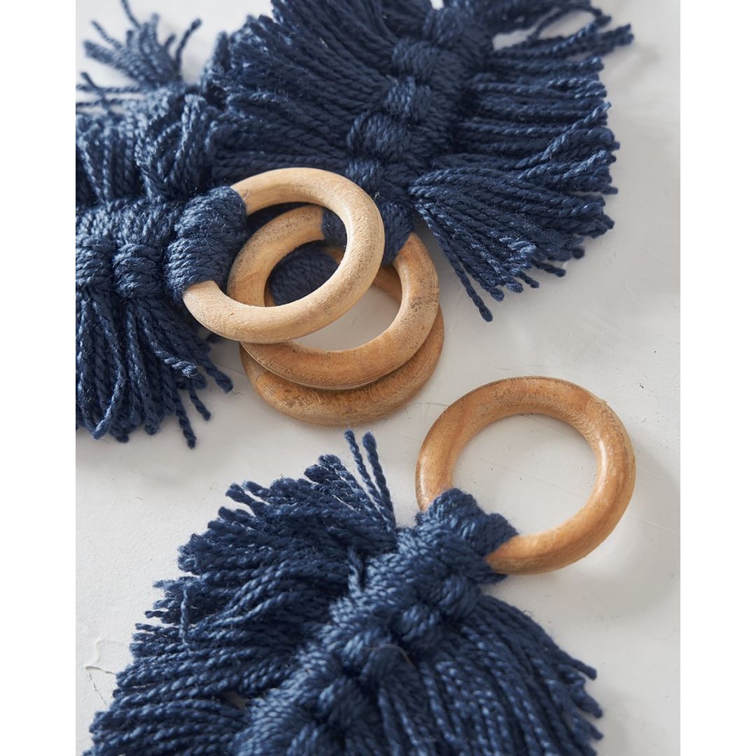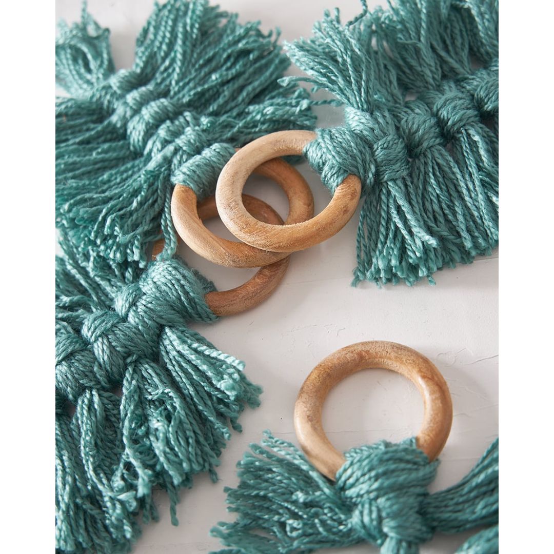Ξύλινο δαχτυλίδι πετσέτας φαγητού με boho κρεμαστό μακραμέ, από 100% βαμβάκι. Διαθέσιμο σε μπλε, μπλε raf, lime, μπεζ, πετρόλ ανοιχτό. Ιδανική επιλογή για διακόσμηση τραπεζιού γάμου/βάπτισης. Διάσταση: 10x10x7cm