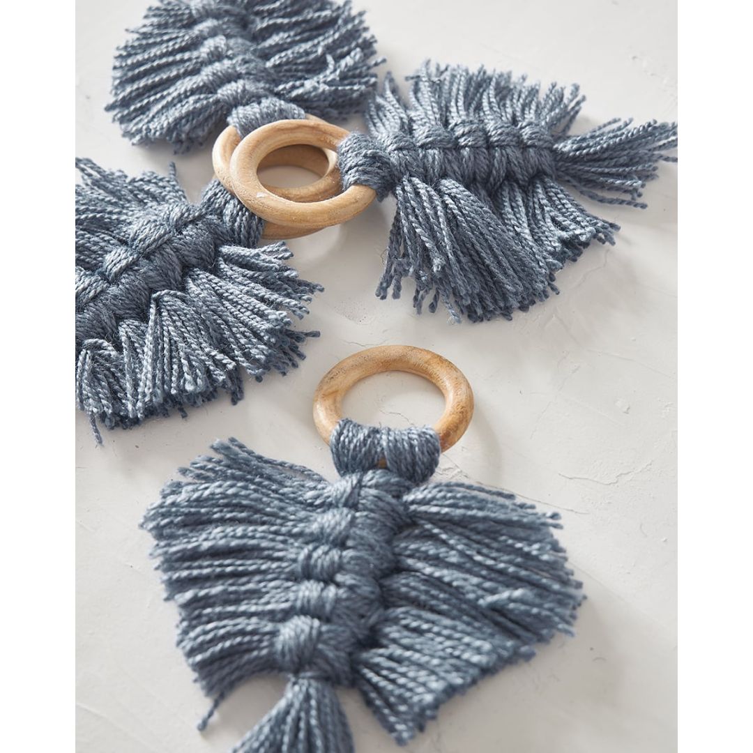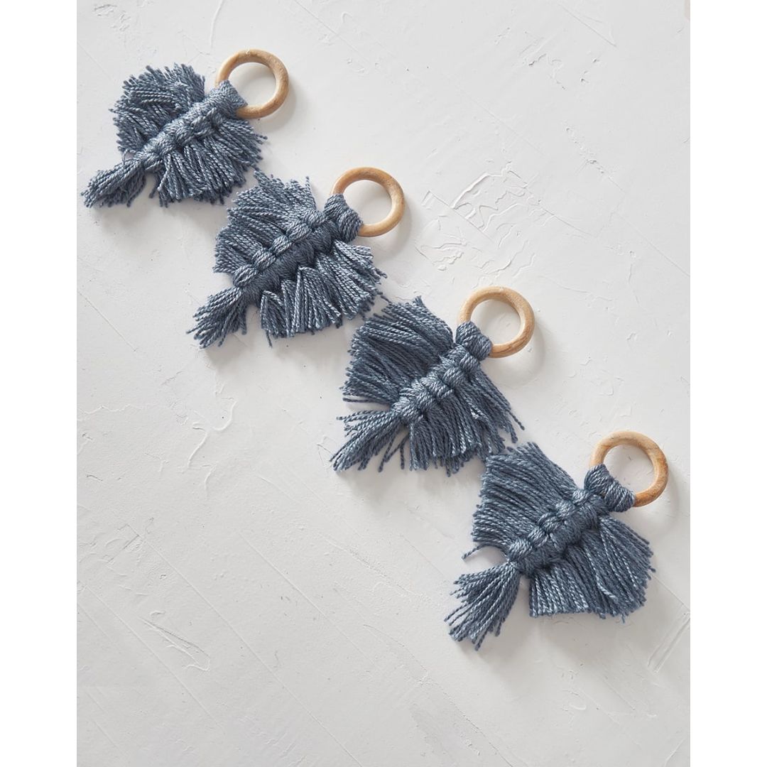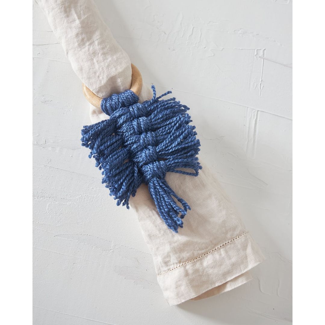 Ξύλινο δαχτυλίδι πετσέτας φαγητού με boho κρεμαστό μακραμέ, από 100% βαμβάκι. Διαθέσιμο σε μπλε, μπλε raf, lime, μπεζ, πετρόλ ανοιχτό. Ιδανική επιλογή για διακόσμηση τραπεζιού γάμου/βάπτισης. Διάσταση: 10x10x7cm