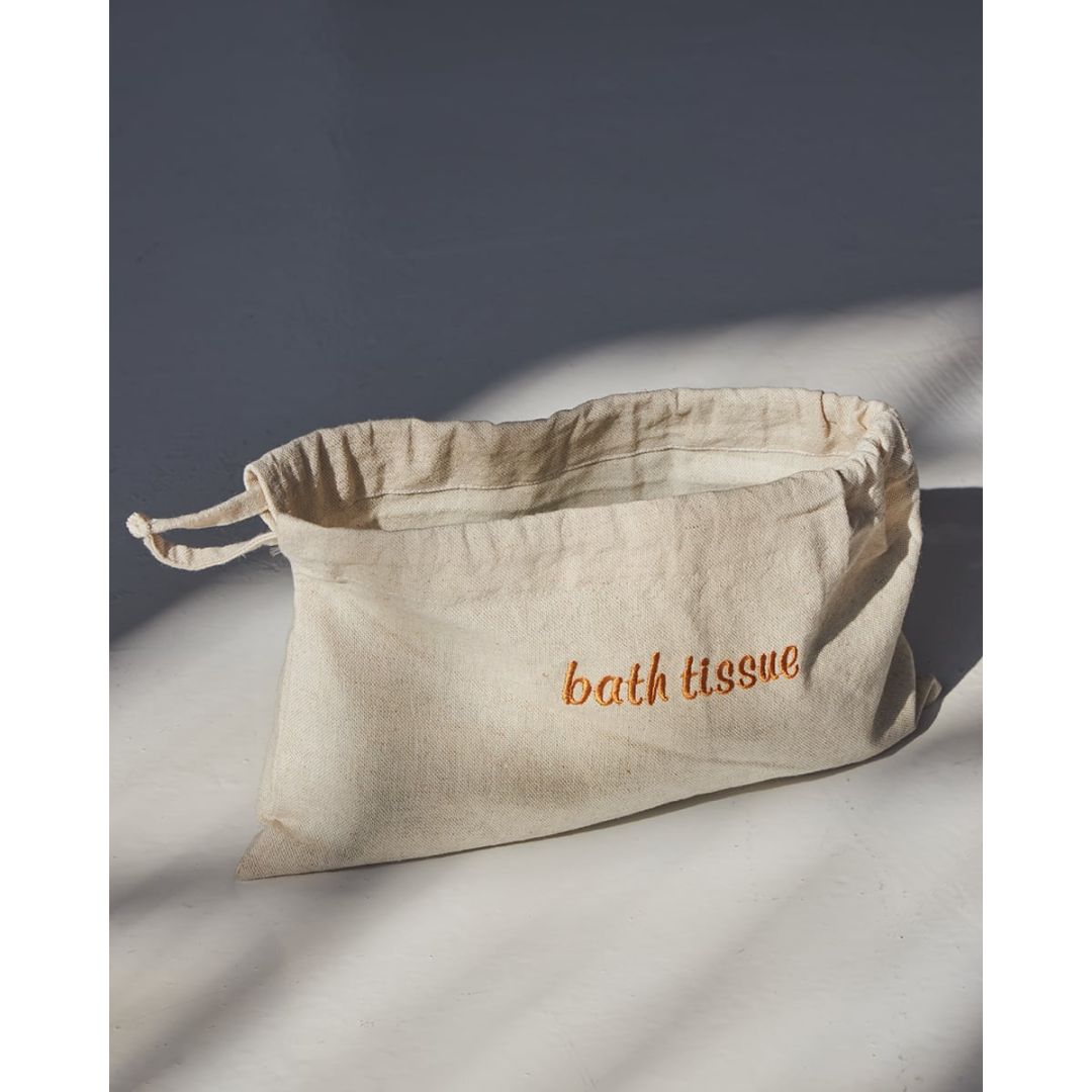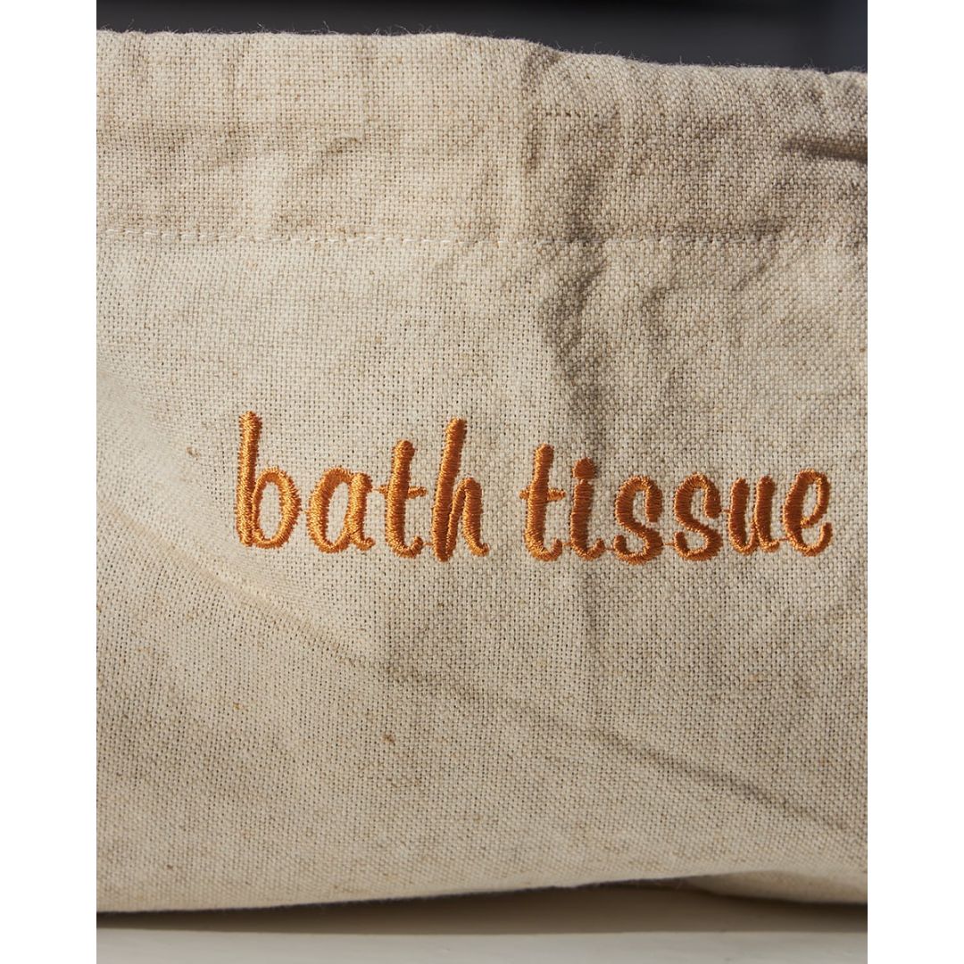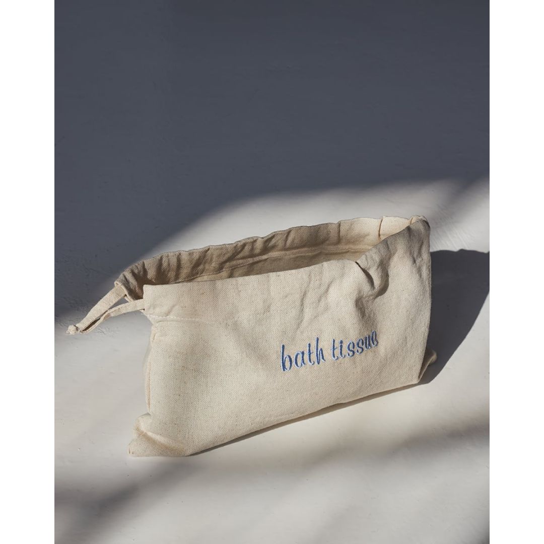 Κομψή θήκη αποθήκευσης, από καραβόπανο με κέντημα 'bath tissue'. Μια υπέροχη ιδέα για τον χώρο του μπάνιου. Διαθέσιμη σε 2 αποχρώσεις. Διάσταση: 33x20cm.