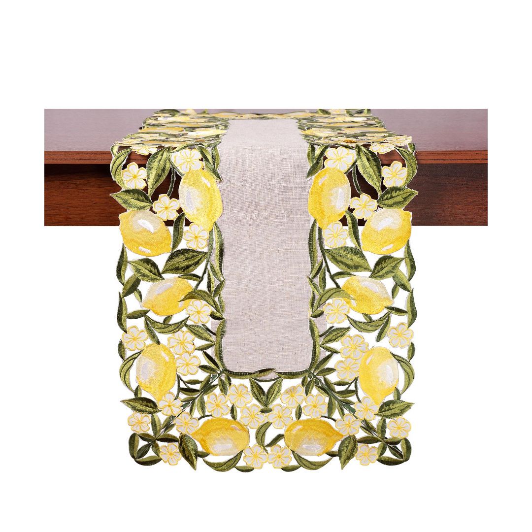 Τραβέρσα με ύφασμα και κοφτό σχέδιο με λεμόνι στη φάσα.