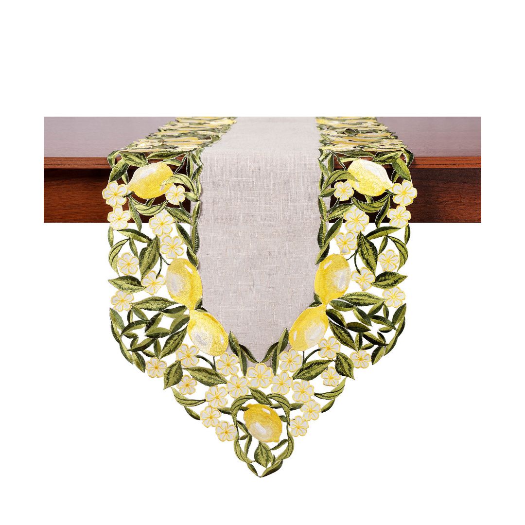Τραβέρσα με ύφασμα και κοφτό σχέδιο με λεμόνι στη φάσα.