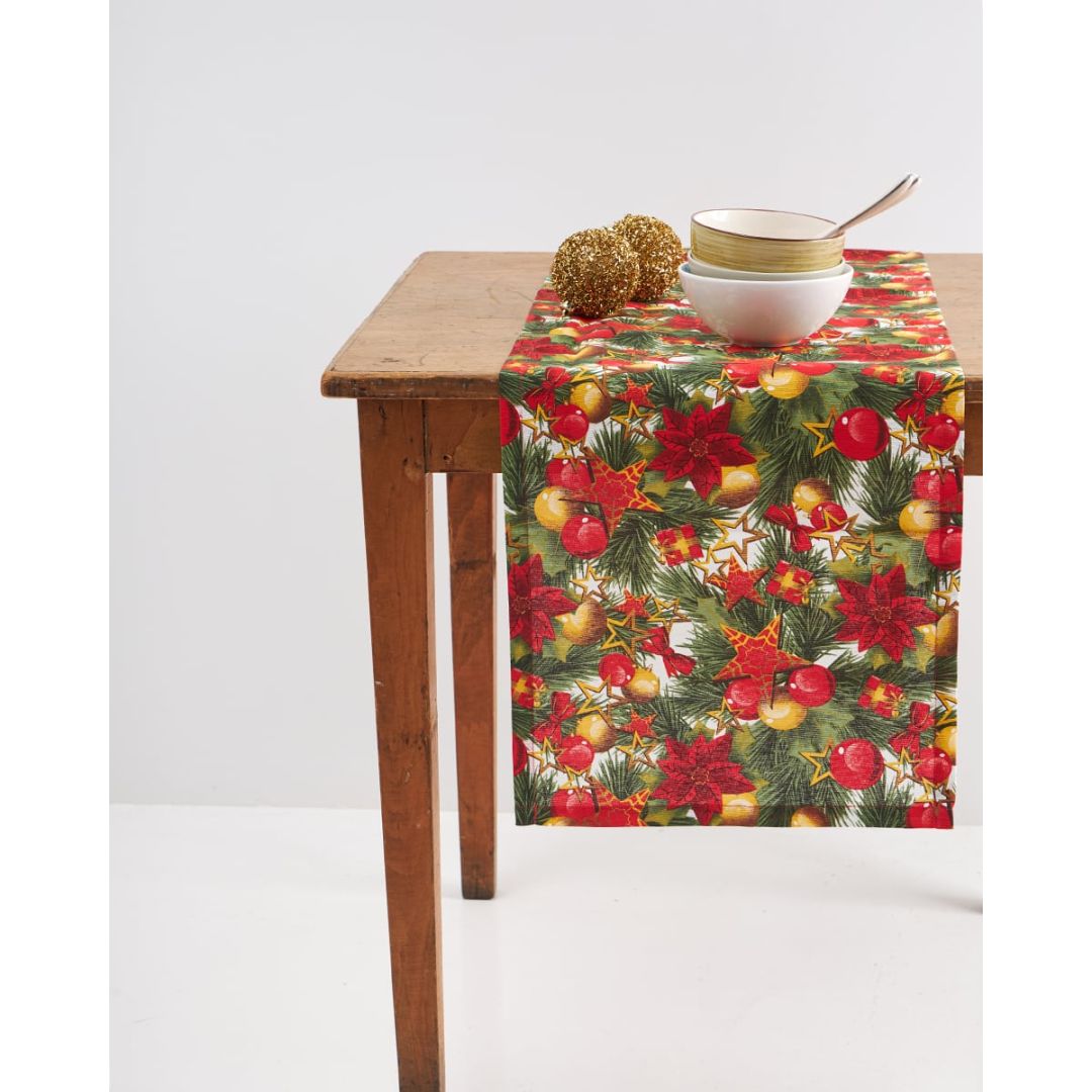 Χριστουγεννιάτικη τραβέρσα με σχέδιο χριστουγενιάτικες γιρλάντες, από σύμμεικτο βαμβάκι.