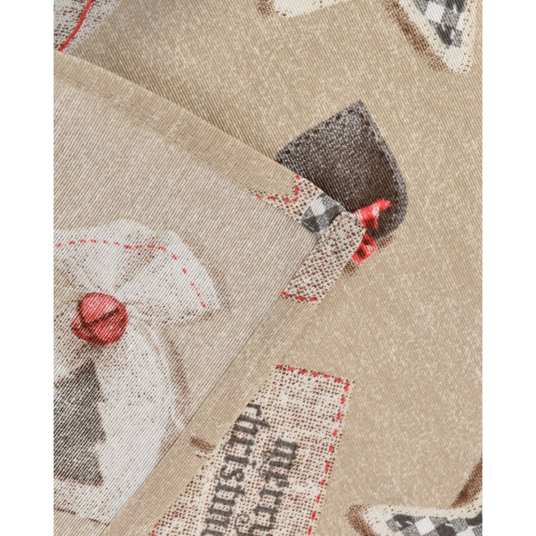 Χριστουγεννιάτικη τραβέρσα με χριστουγεννιάτικά στοιχεία, από σύμμεικτο βαμβάκι.
