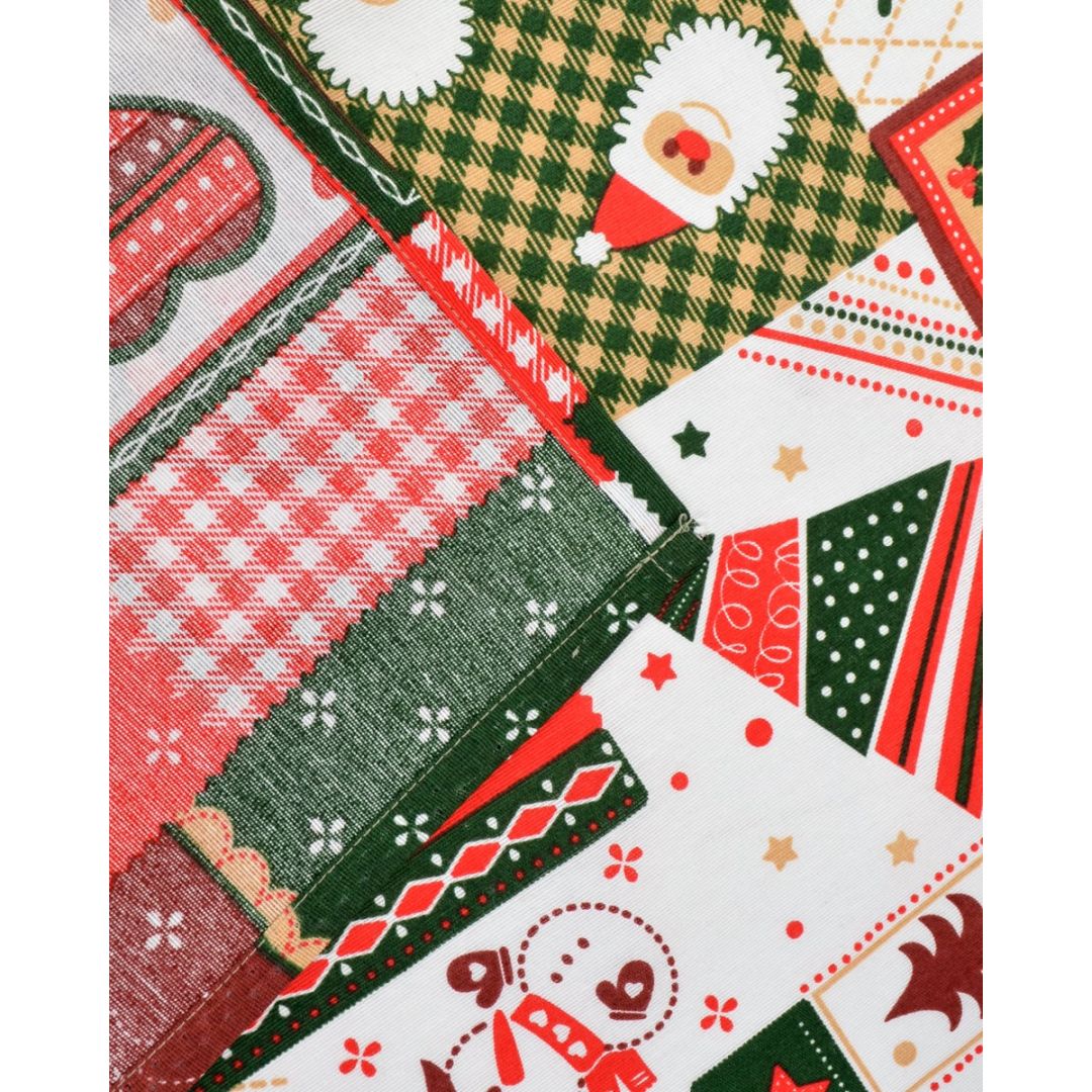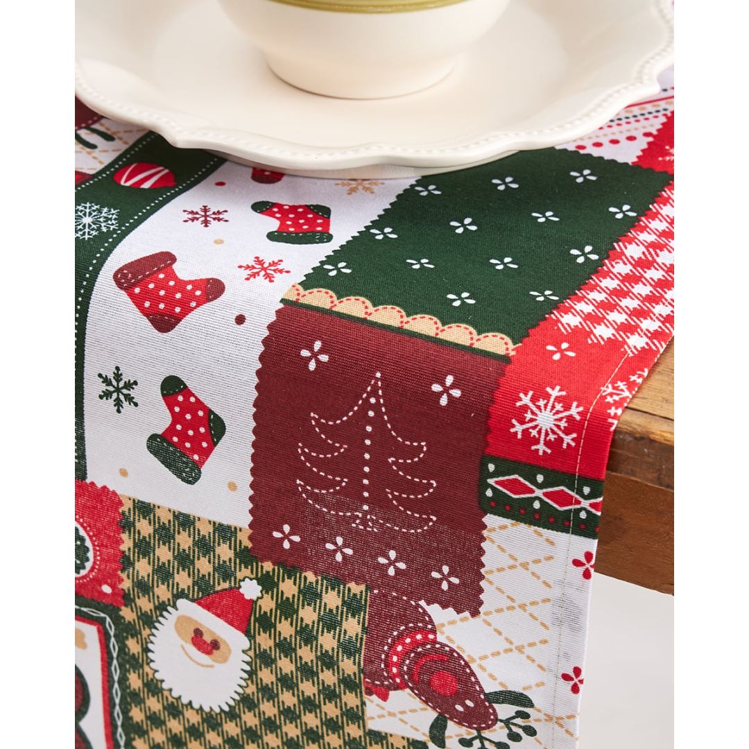 Χριστουγεννιάτικη τραβέρσα με χαρούμενα χριστουγεννιάτικα και γεωμετρικά σχέδια, από σύμμεικτο βαμβάκι.