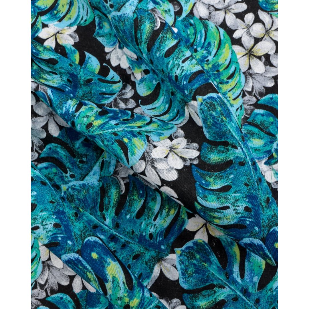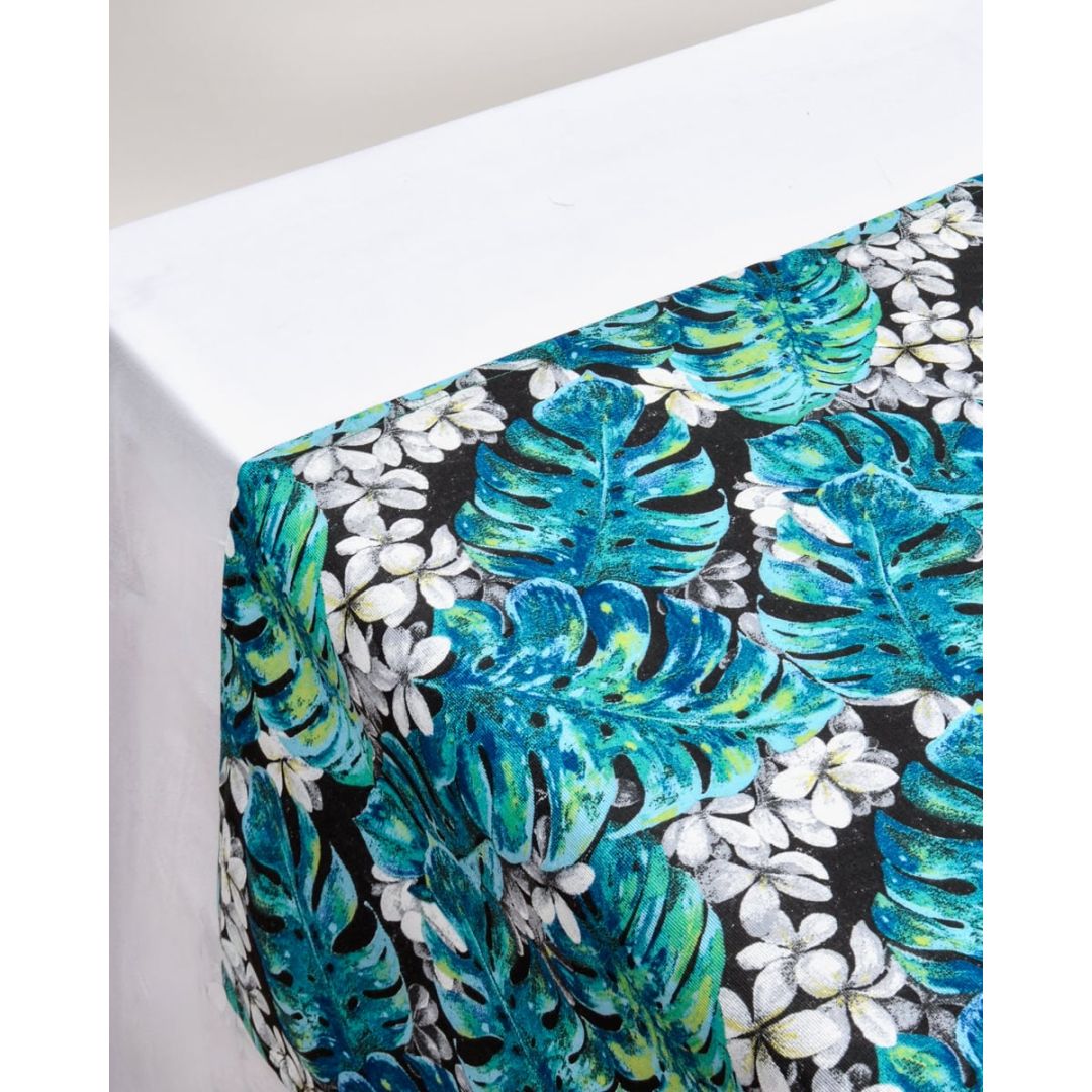 Τραβέρσα λονέτα με σχέδιο φύλλα και λουλούδια, από σύμμεικτο βαμβάκι.