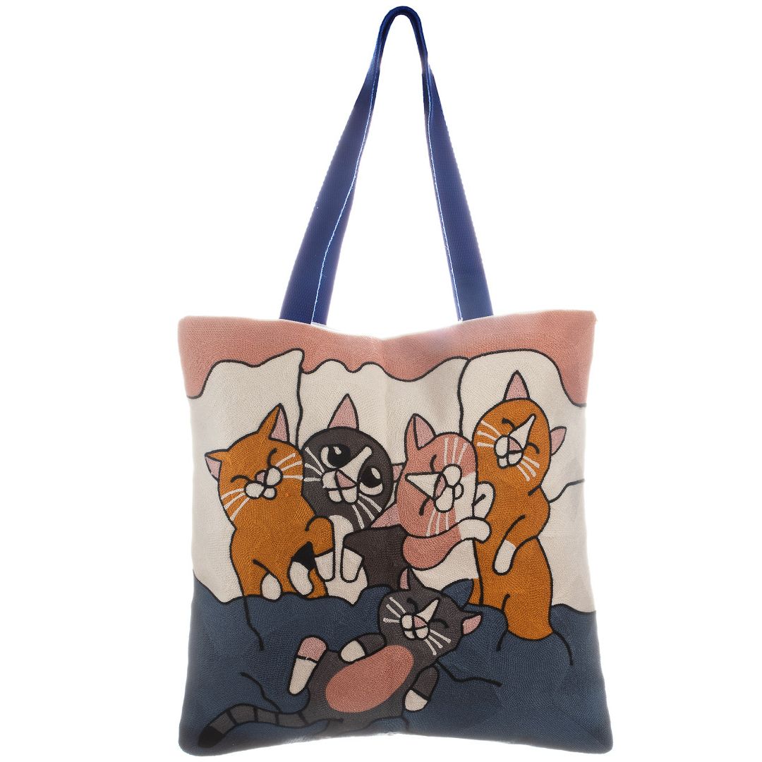 Πολύγαζη τσάντα με φόδρα μαγνητικό κουμπί και πλεκτή λαβή