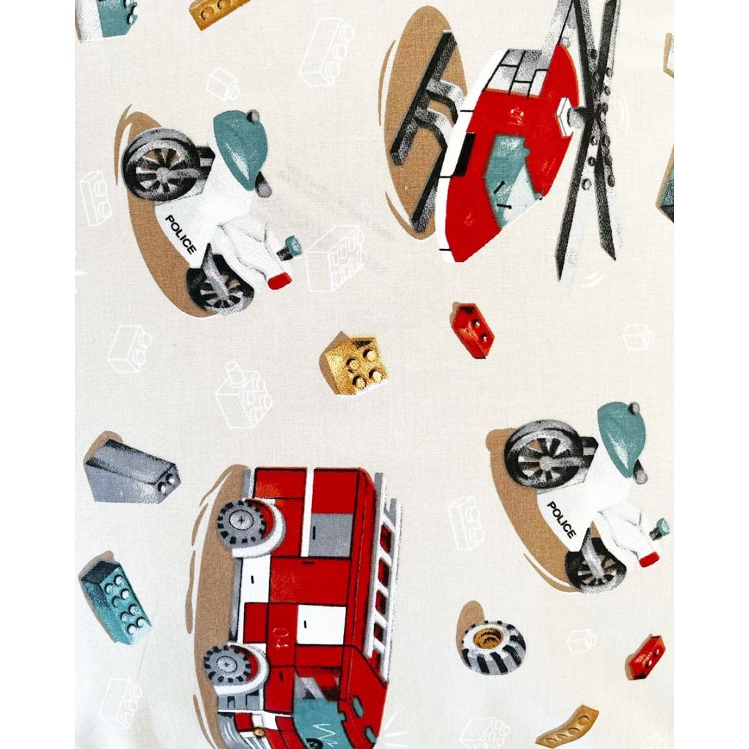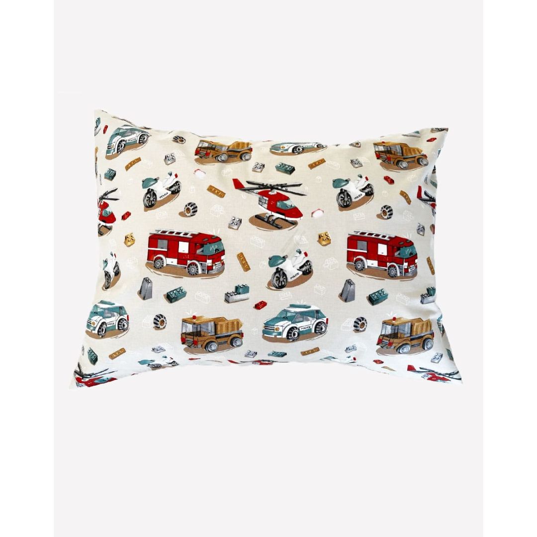 Παιδική εμπριμέ μαξιλαροθήκη με παράσταση οχήματα ασφαλείας, από 100% οργανικό βαμβάκι.