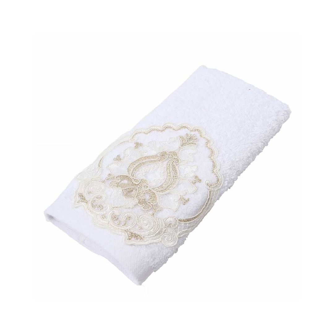 Πετσέτα χειρός σε διάσταση 30x50cm, σε λευκή απόχρωση. Από 100% βαμβακερά νήματα, με μοτίφ εκρού.