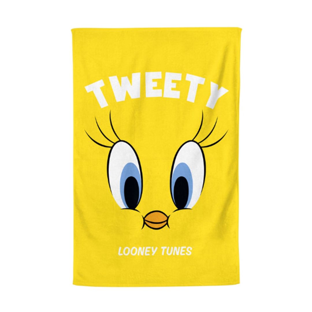 Βελουτέ πετσέτα θαλάσσης Warner Bros με παιδική παράσταση Tweety, από 100% βαμβάκι.