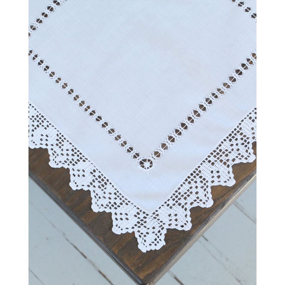 Πετσετάκι με περιμετρική δαντέλα και αζούρ, από 100% βαμβάκι.
